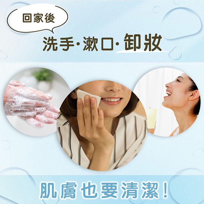 ※ 如果仍習慣洗臉,請用清水或溫水直接沖洗即可,無需使用洗面乳。