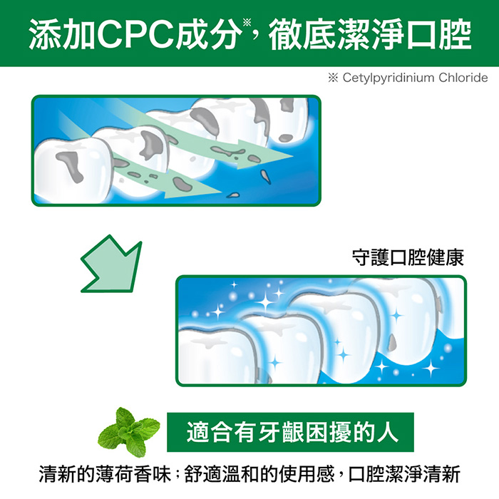 預防口腔異味、清新口氣、全面潔淨口腔、深度清潔牙