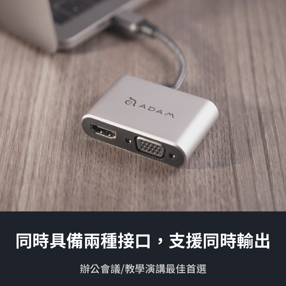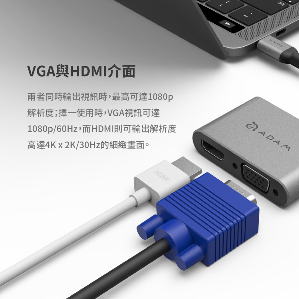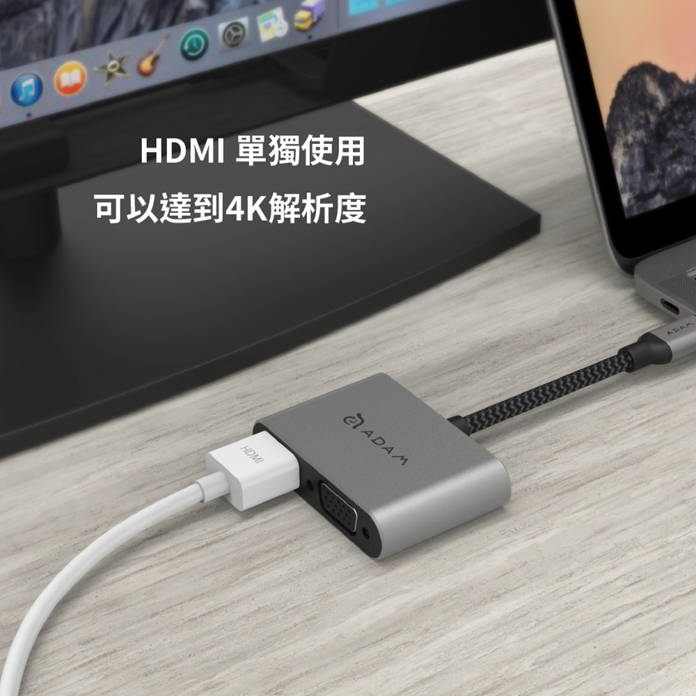 【亞果元素】Hub VH1 USB 3.1 Type-C 轉 VGA-HDMI 二合一顯示轉接器-灰