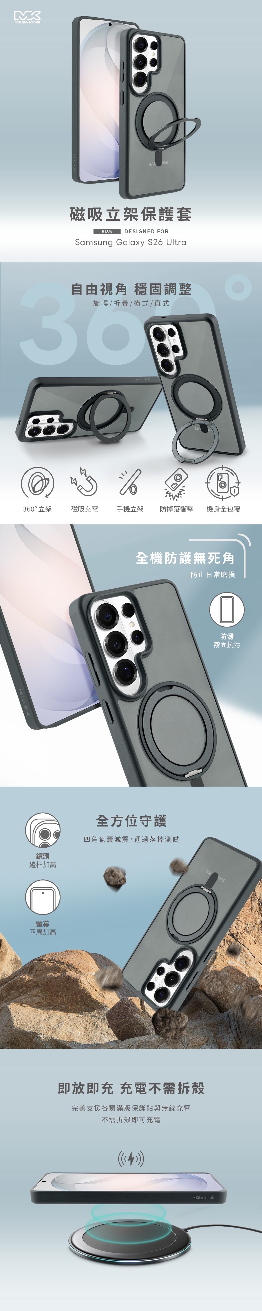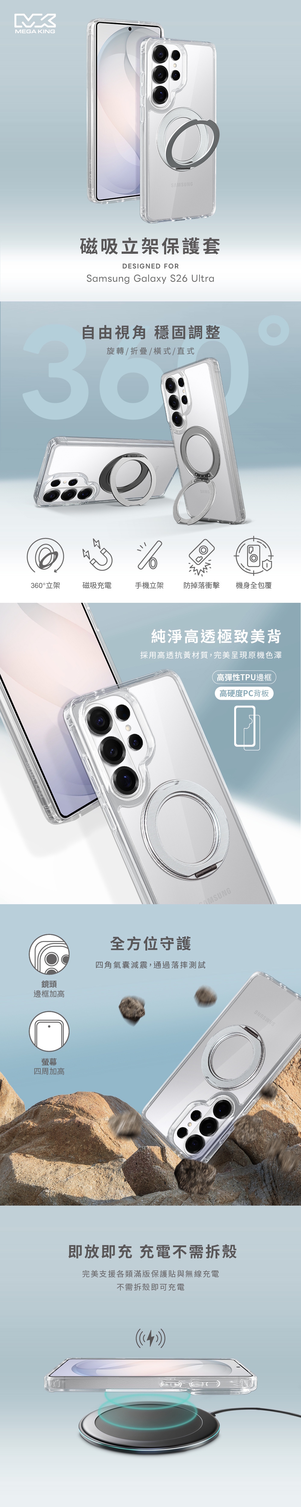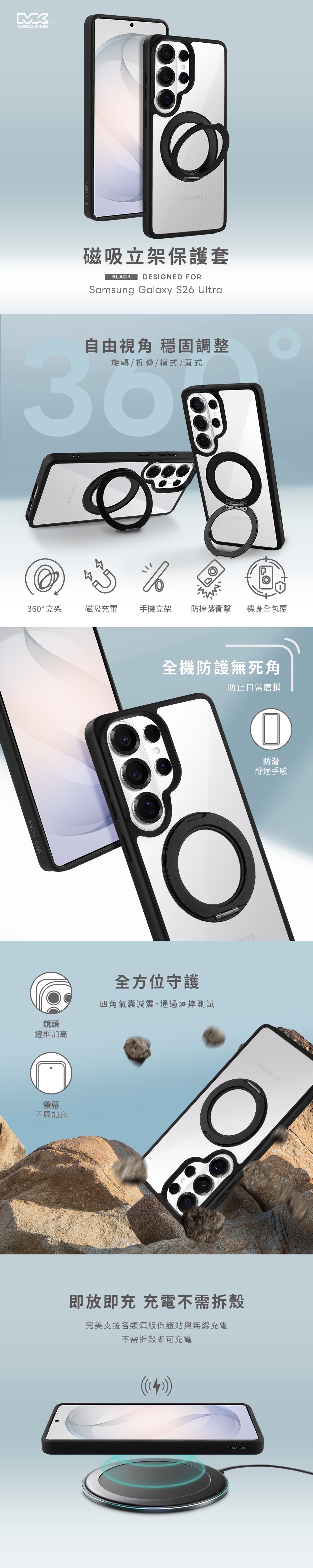 MEGA KING 三星 Galaxy S26 Ultra 磁吸立架保護套
