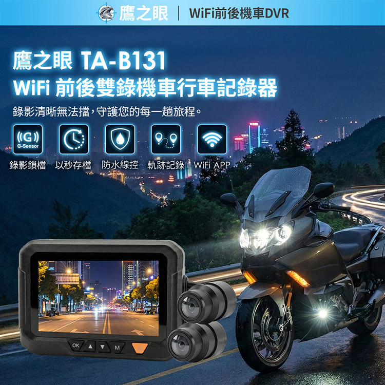 【鷹之眼】WiFi前後機車DVR行車記錄器-送32G卡 (國家認證 一年保固)TA-B131 行車紀錄器