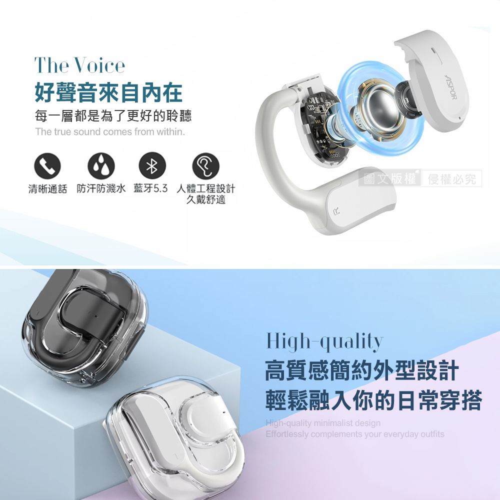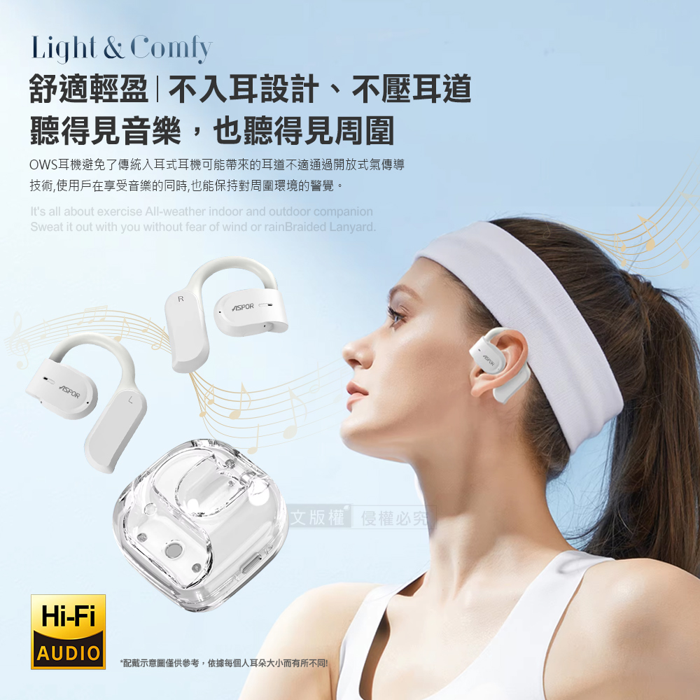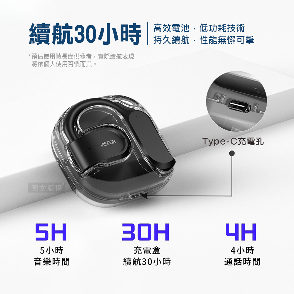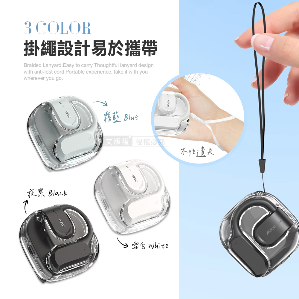 AirCloud 晶透耳掛式藍牙耳機 OWS開放式 Hi-Fi高音質 藍牙V5.3 自帶掛繩(夜黑)