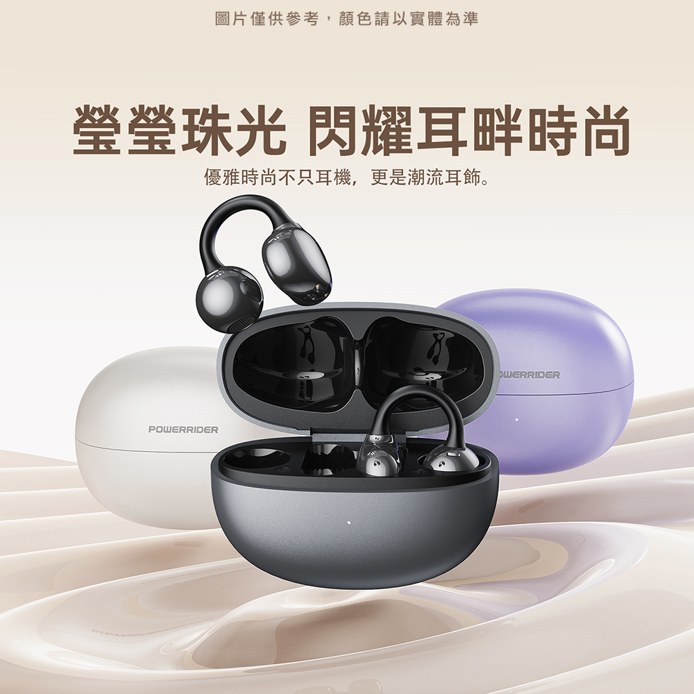 PowerRider 珠光色彩 OWS 耳夾式藍牙耳機 20H超長工時 藍牙5.4(白金)