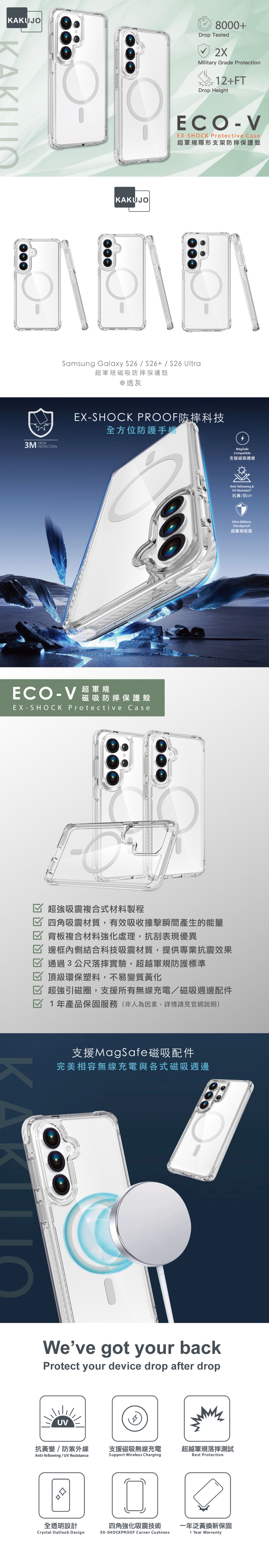 KAKUJO超軍規磁吸防摔殼ECO-V-SAMSUNG S26+ 透灰