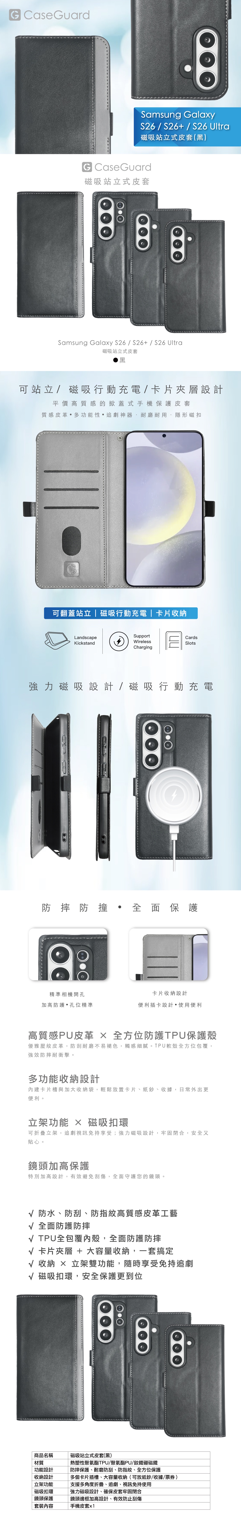 CaseGuard SAMSUNG S26 Ultra 磁吸站立式皮套 黑