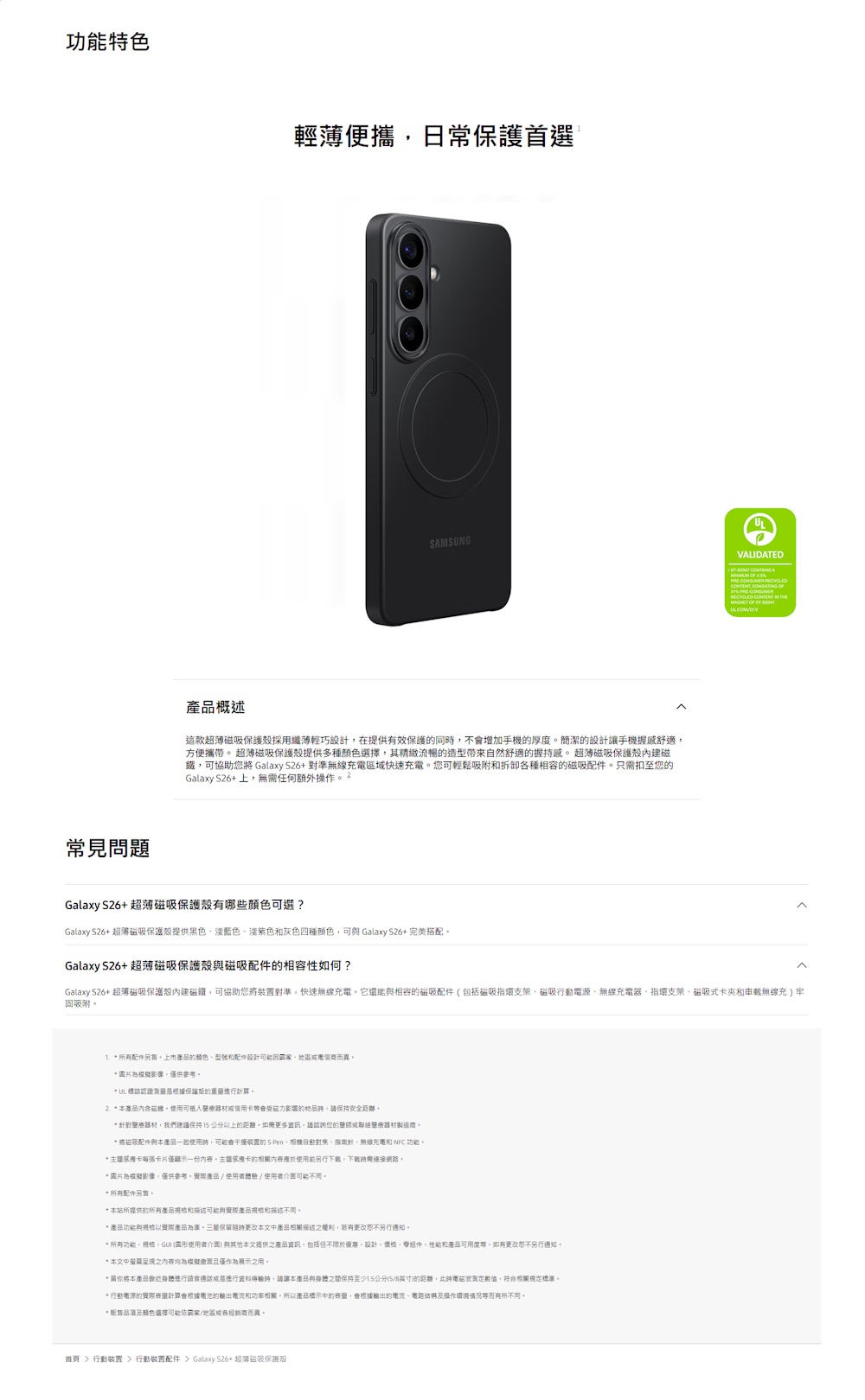 三星 Galaxy S26+ 超薄磁吸保護殼