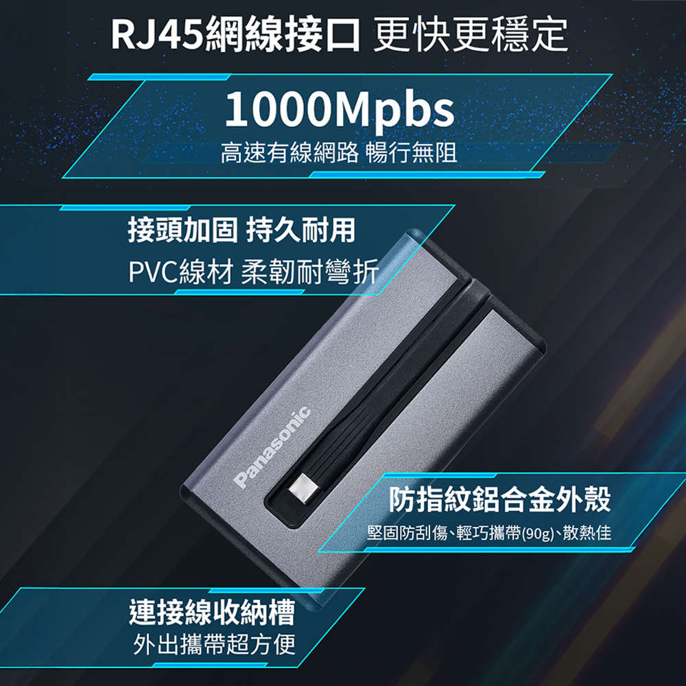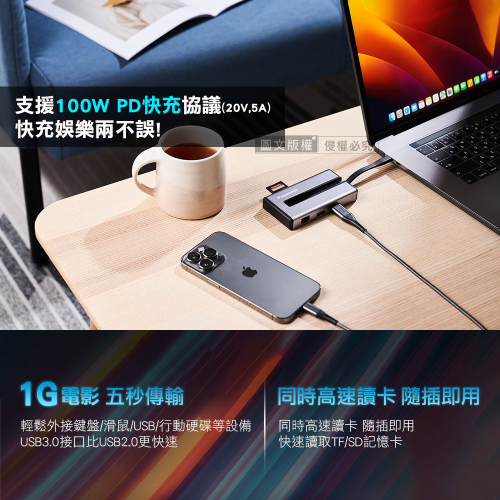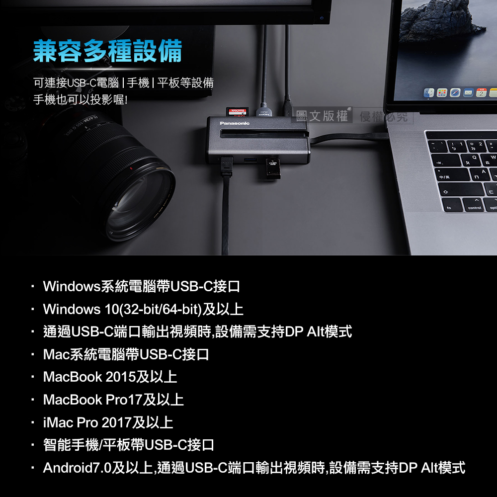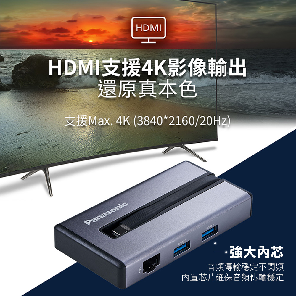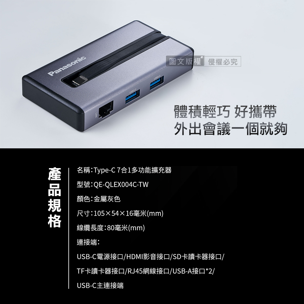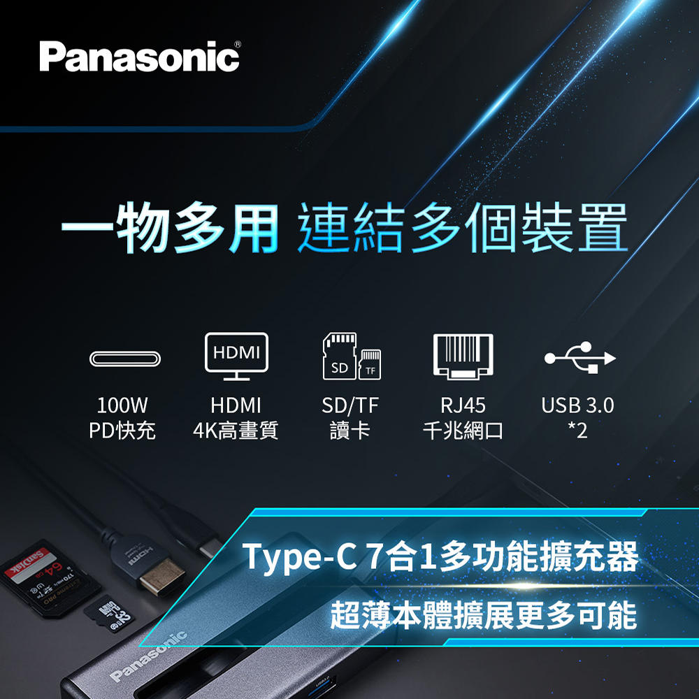 Panasonic 7合1多功能擴充器 USB3.2 Type-C+HDMI+記憶卡+RJ45 Mac筆電擴充轉接器