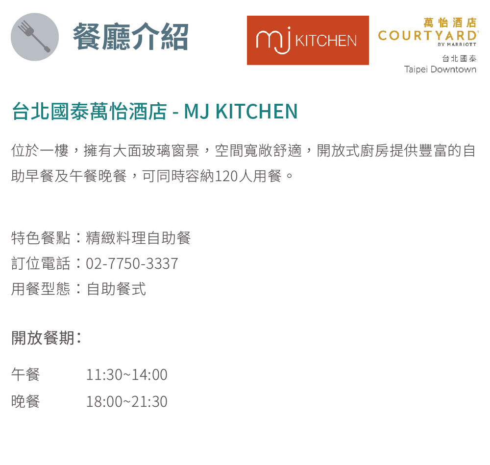 台北【國泰萬怡酒店】MJ KITCHEN 平日自助式午餐MO26
