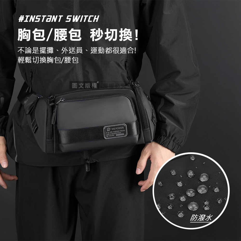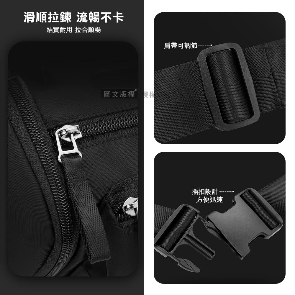 黑曜動力 機能防潑水收納胸包 大容量斜背包 可裝iPad mini 外送/擺攤/運動(黑色)