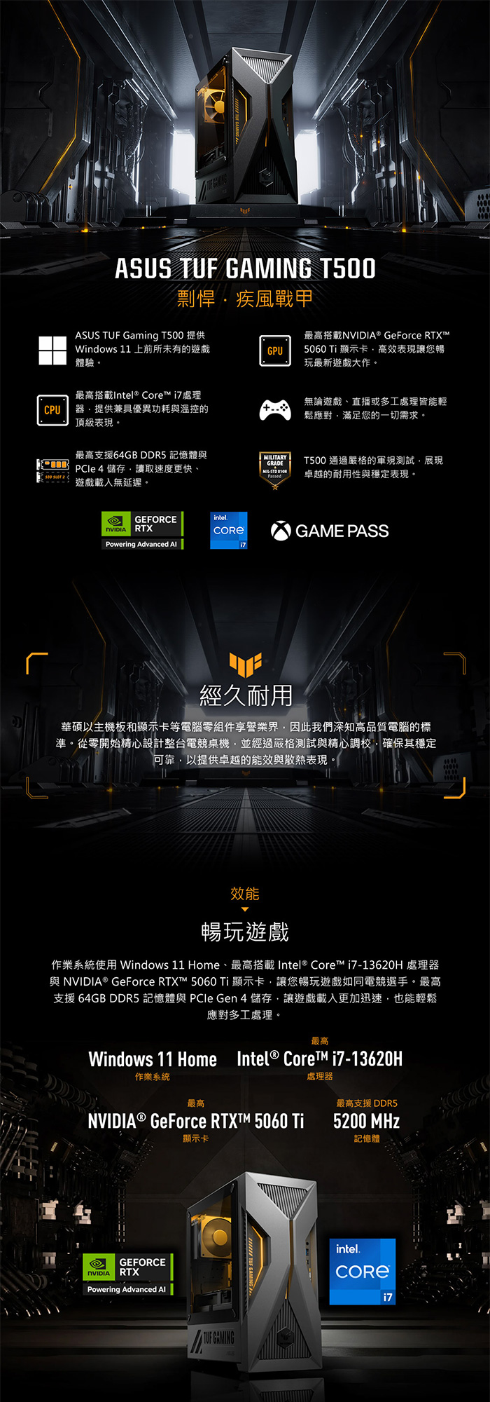《ASUS 華碩》 H-T500MV-13420H415W5 i5-13420H/16G+8G/512G+1TB/RTX3050 桌上電腦/特仕版