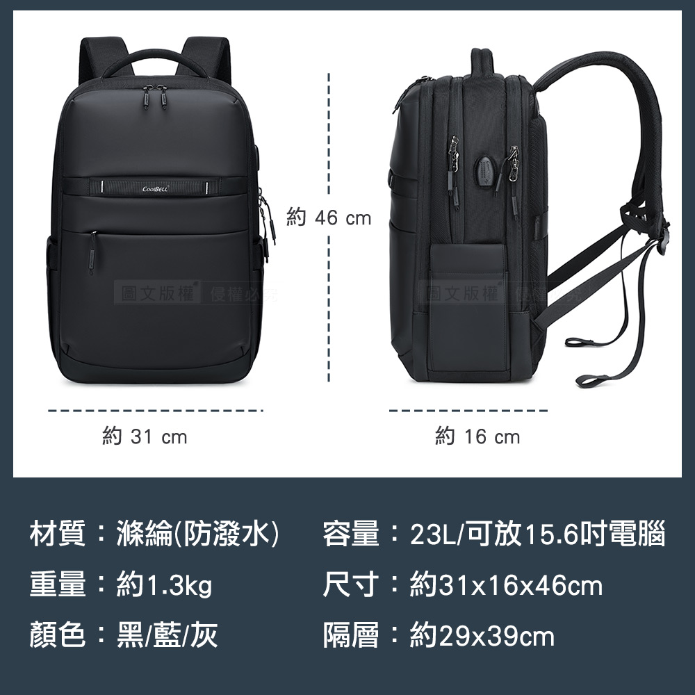 設有電腦專用防撞隔層,多層分區收納