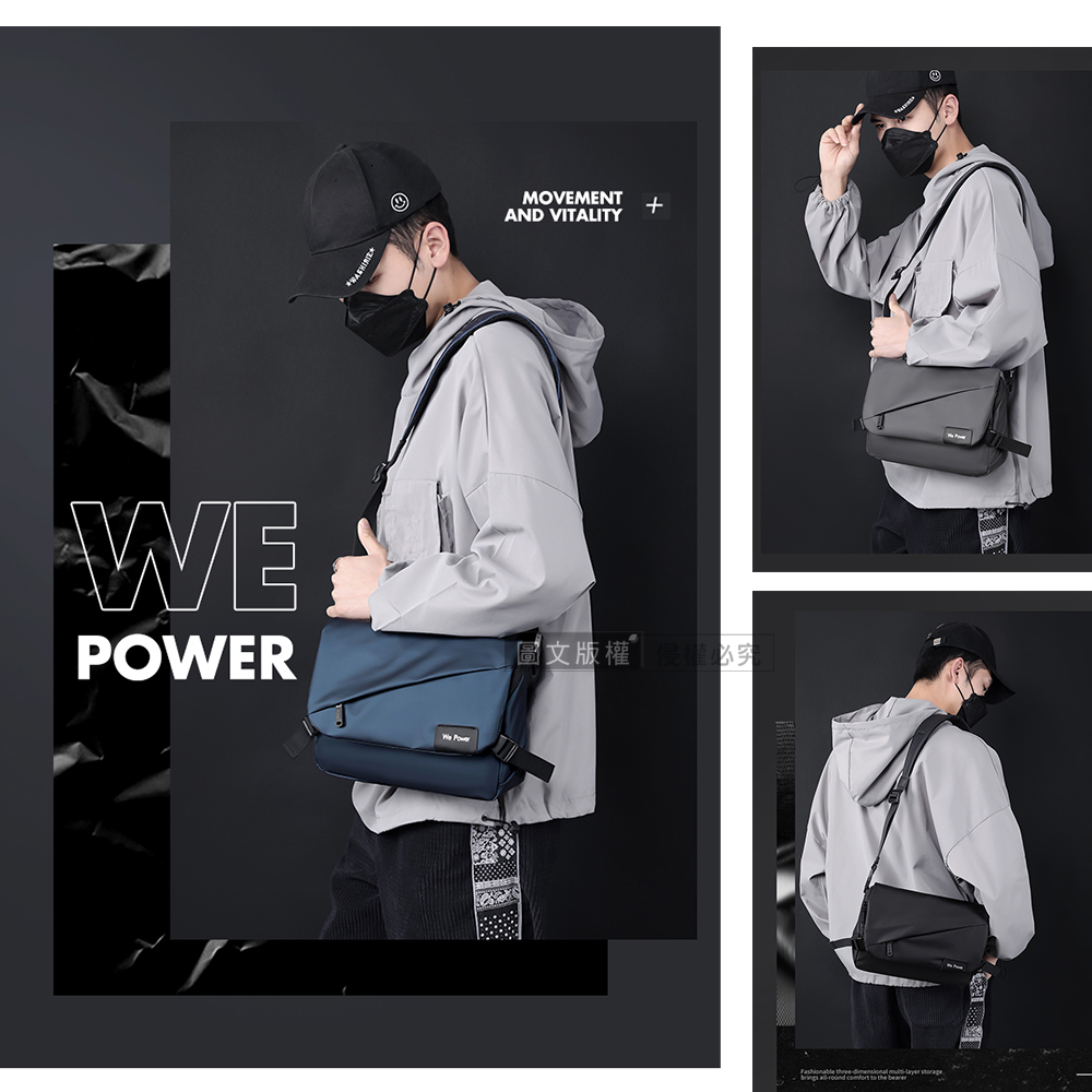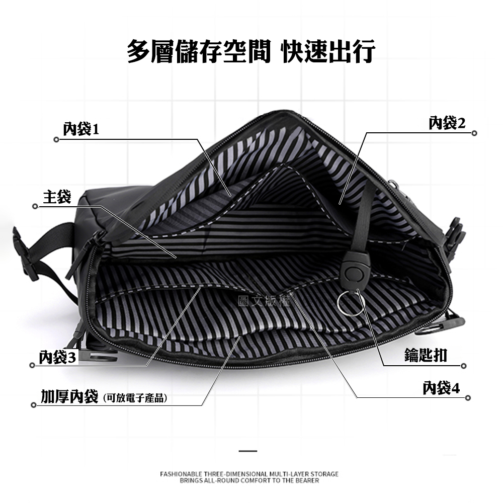 城市脈動 經典郵差包 防潑水斜背包 大容量多隔層側背包 可容納iPad mini 通勤包(灰色)