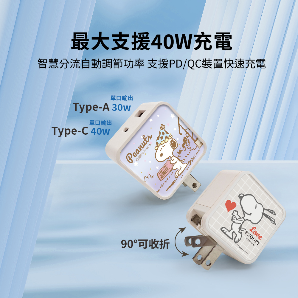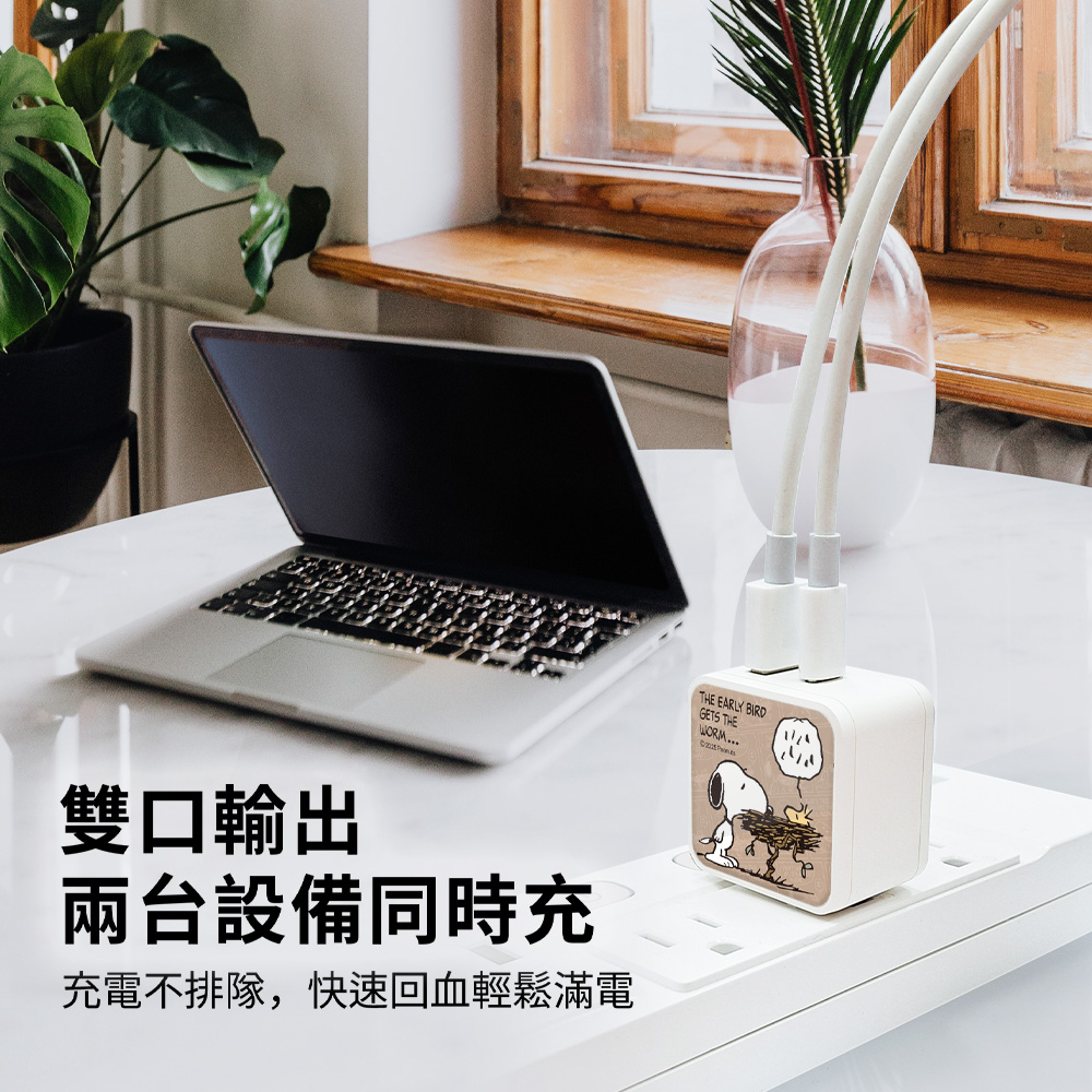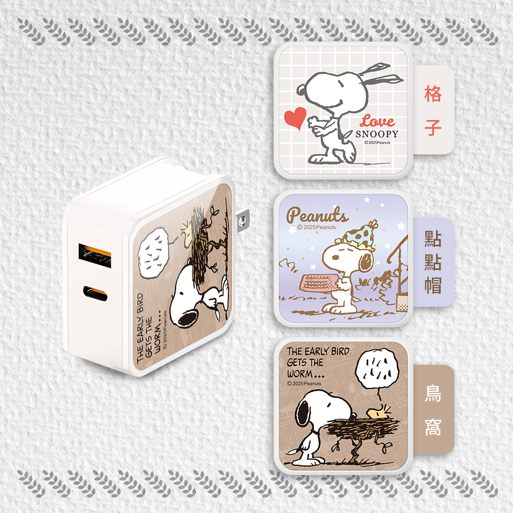 【SNOOPY史努比】夾心玻璃系列 40W PD+QC 充電器-鳥窩