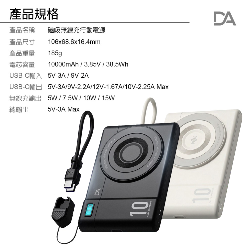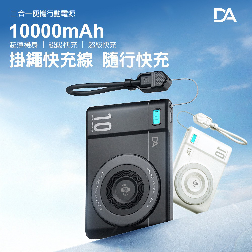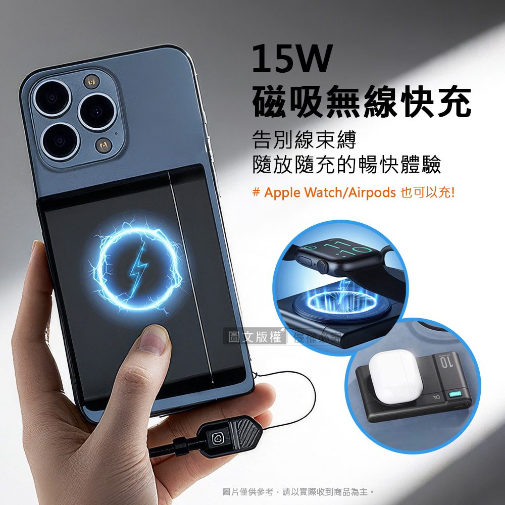 復古相機造型 10000mAh 磁吸超薄小卡充行動電源 支援手錶耳機無線充電(黑色)