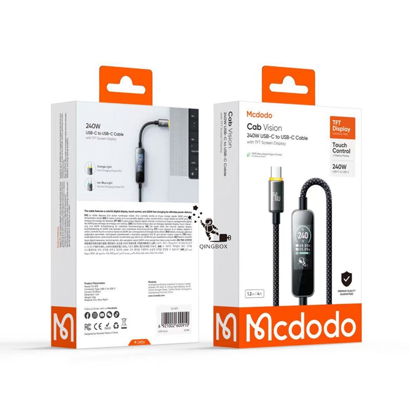 Mcdodo麥多多 LQ Cab Vision系列AI數字智慧彩色數顯數據線C to C 240W 1.2m CA875