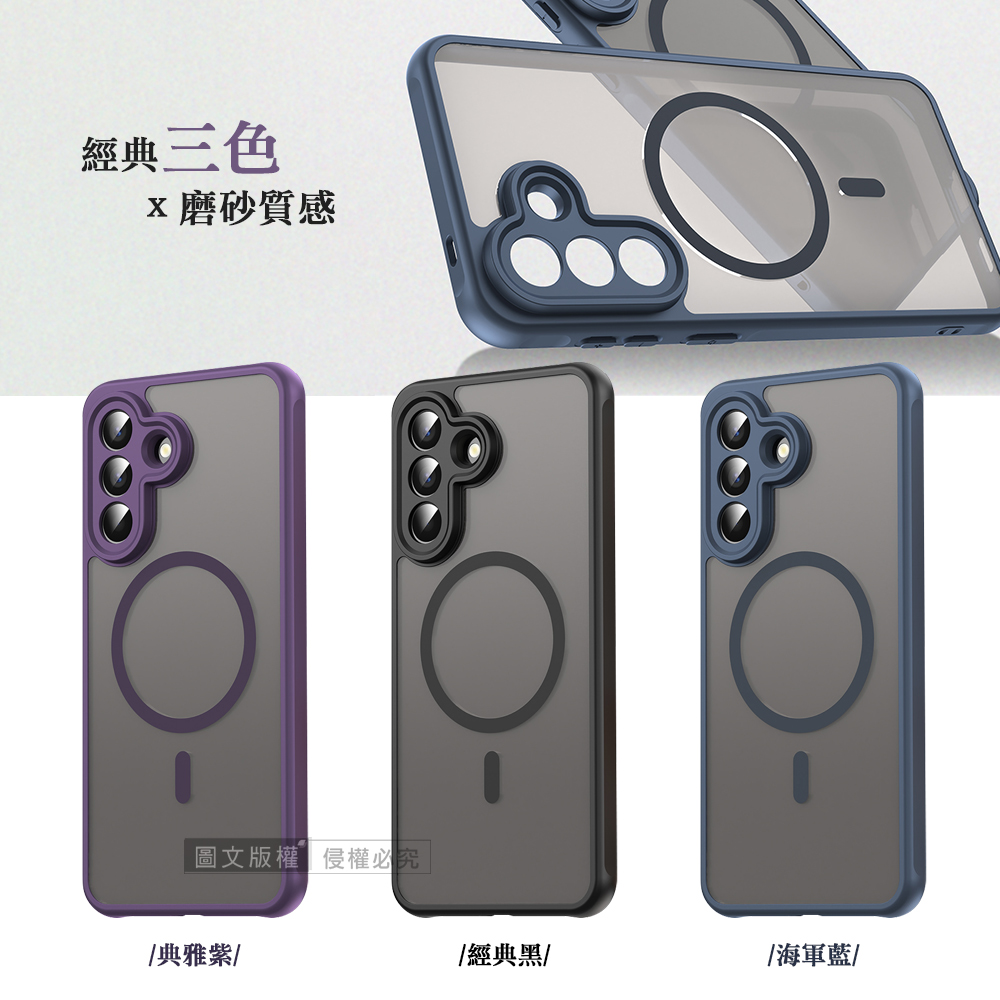 凡盾系列 三星 Galaxy A57 5G 磨砂磁吸防摔殼 鏡頭全包覆 手機殼(海軍藍)