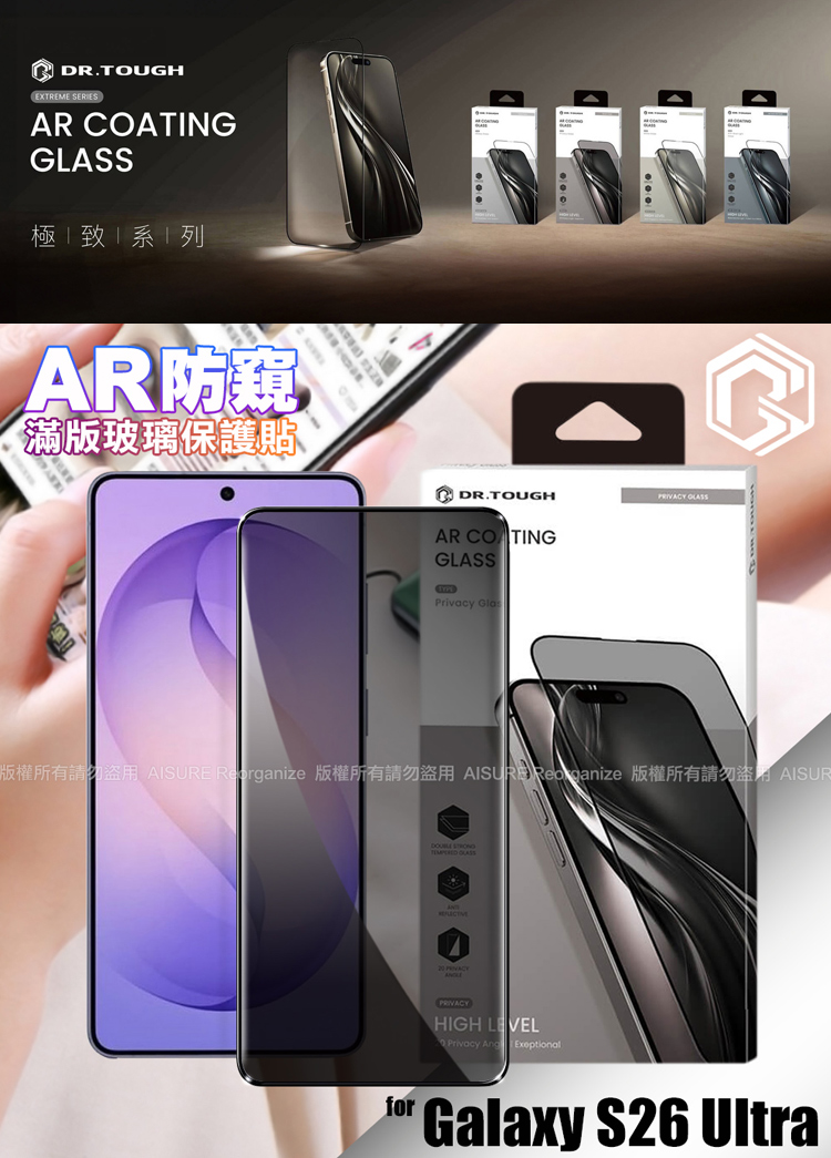 DR.TOUGH硬博士-極致系列 Samsung Galaxy S26 Ultra 滿版玻璃保護貼(AR防窺)