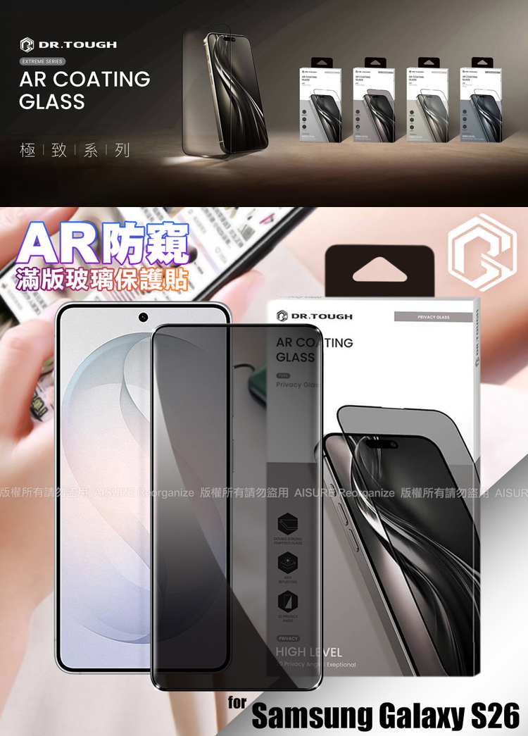 DR.TOUGH硬博士-極致系列 Samsung Galaxy S26 滿版玻璃保護貼(AR防窺)