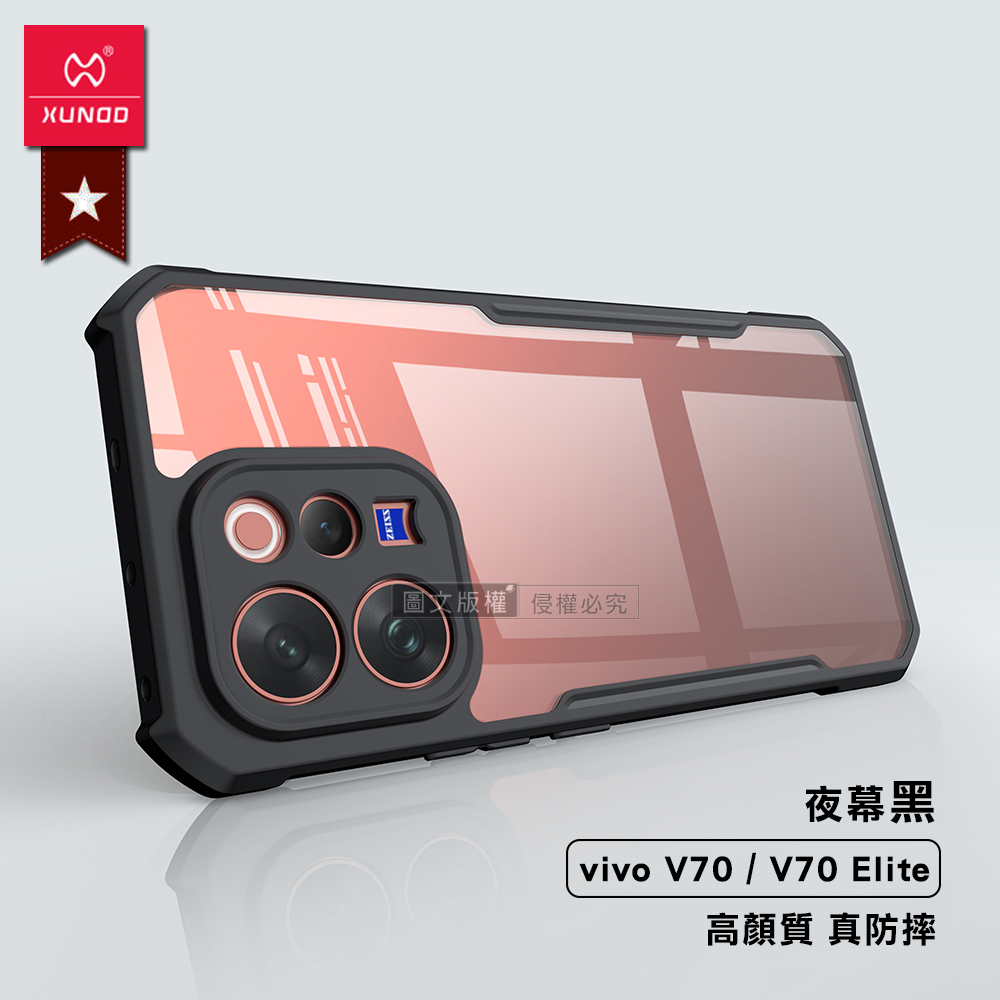 XUNDD訊迪 軍事防摔 vivo V70/V70 Elite 鏡頭全包覆 清透保護殼 手機殼(夜幕黑)