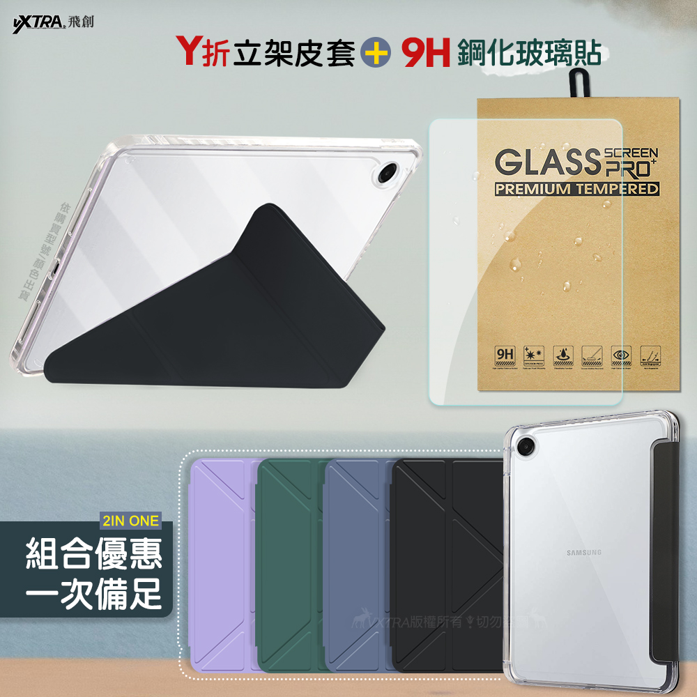 VXTRA 軍事防摔級 三星 Galaxy Tab S11 Ultra 14.6吋 Y折晶透背蓋立架皮套(微醺藍)+9H玻璃貼(合購價)