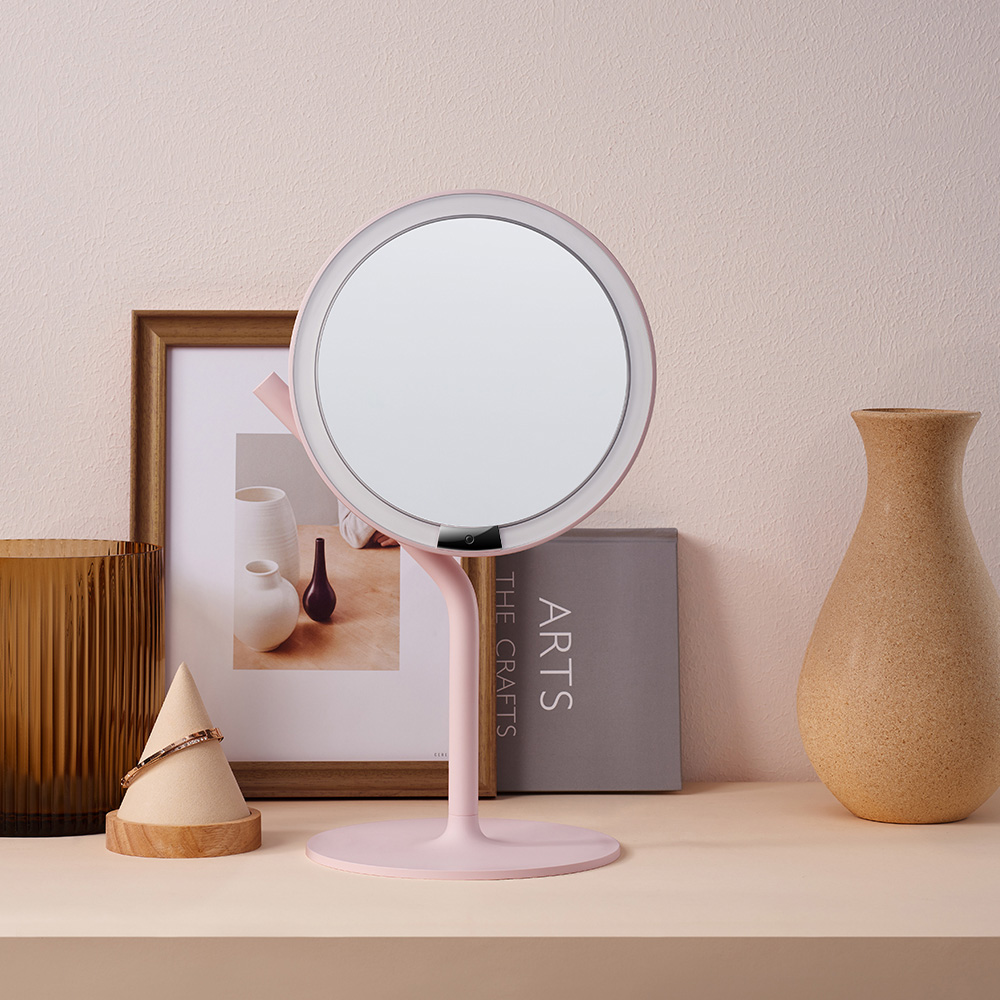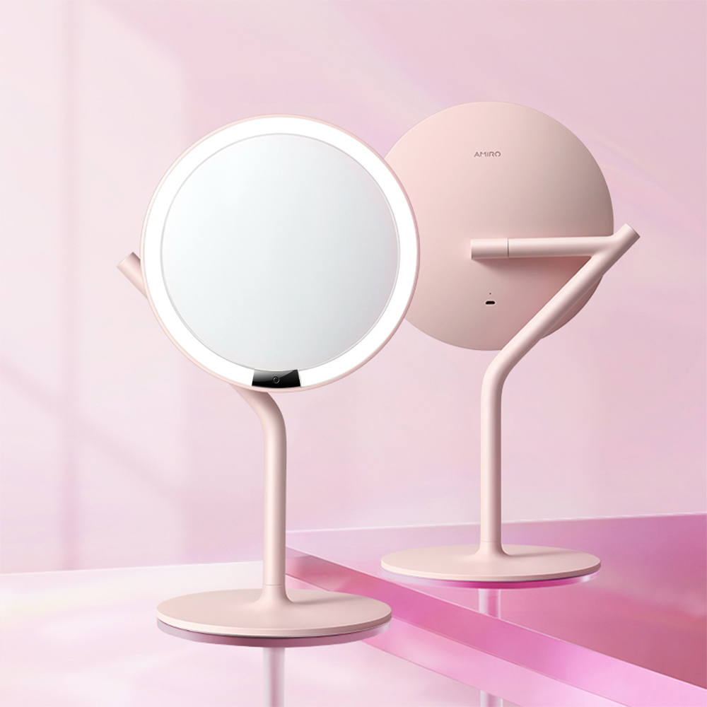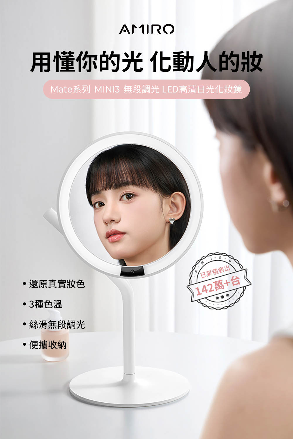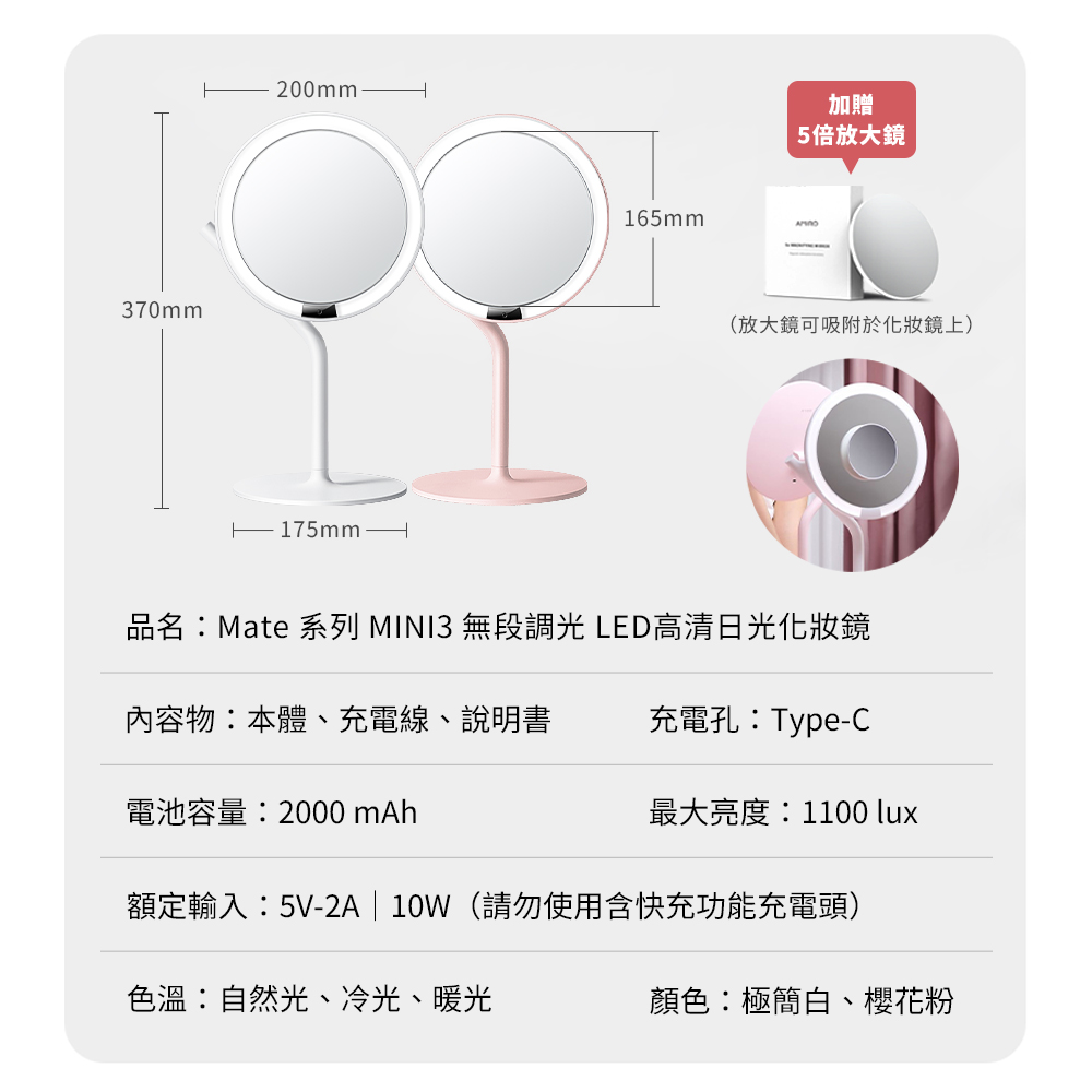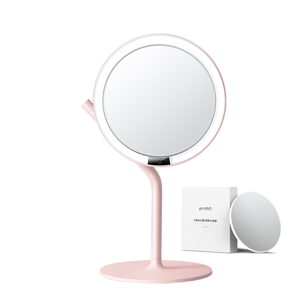 【AMIRO】Mate系列 MINI3 無段調光 LED高清日光化妝鏡-櫻花粉+5倍磁吸放大鏡