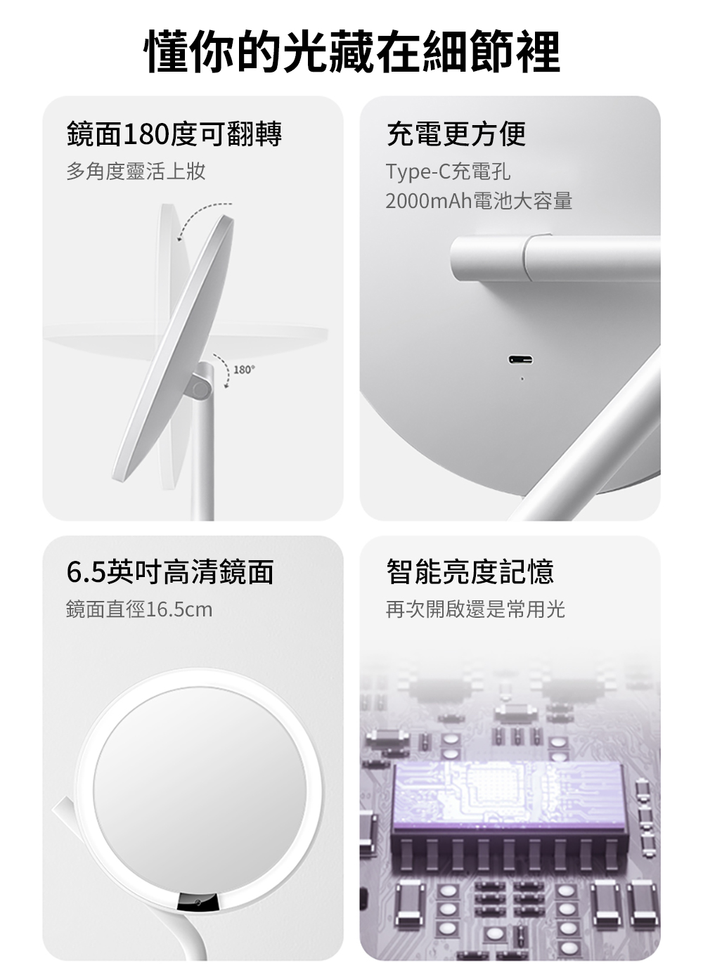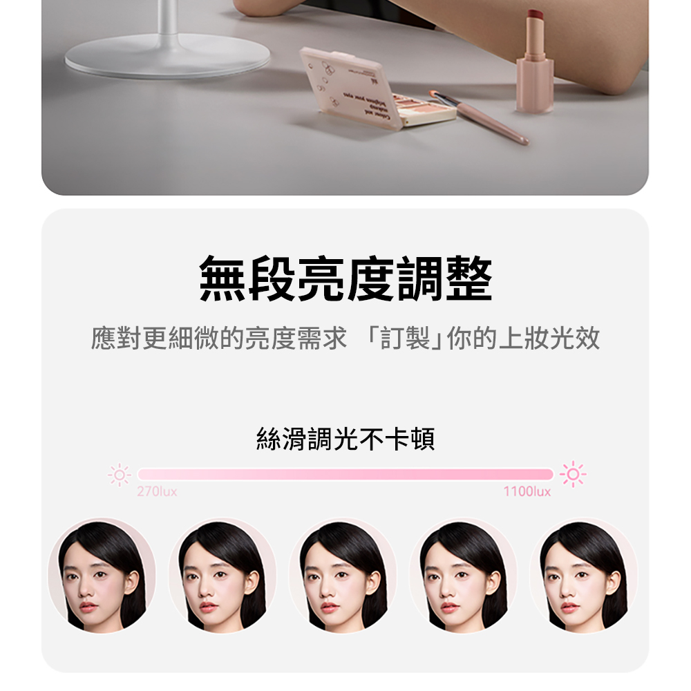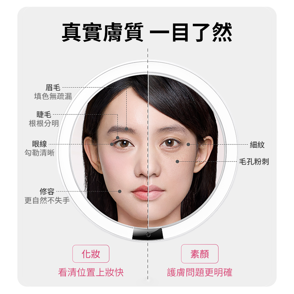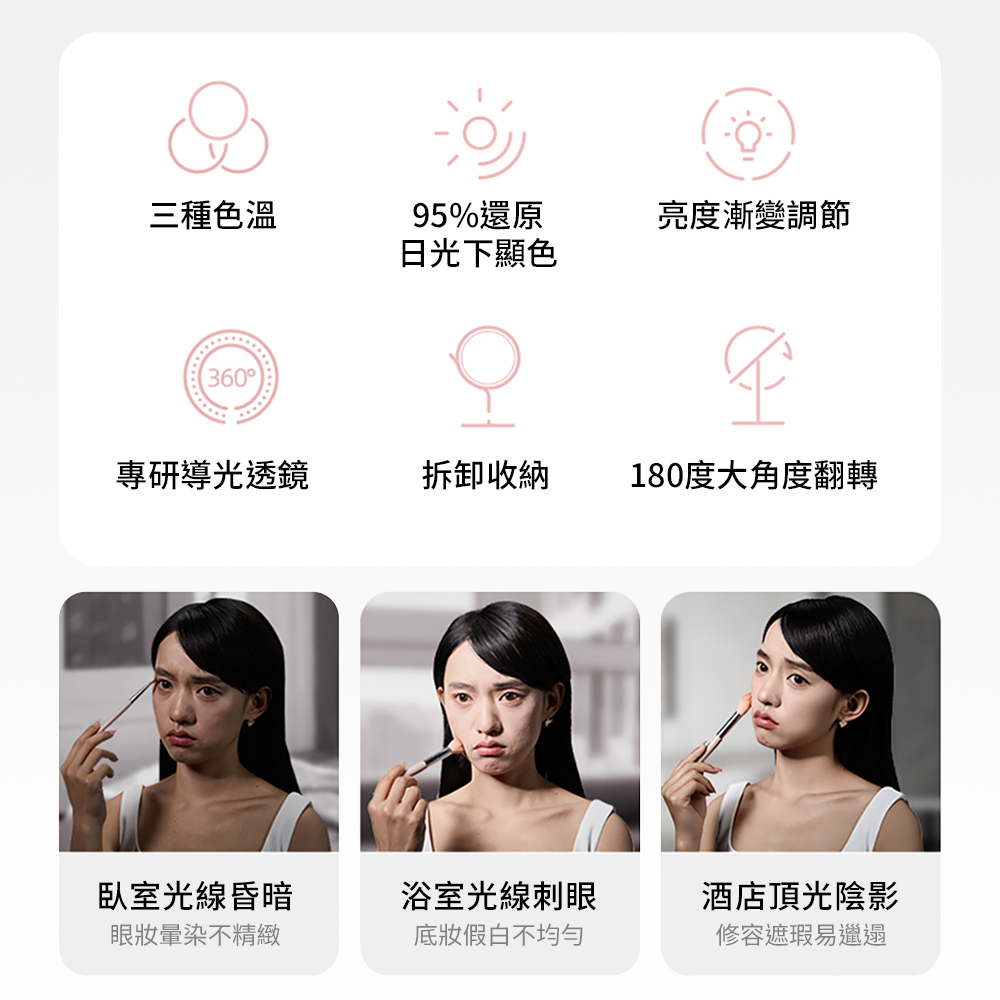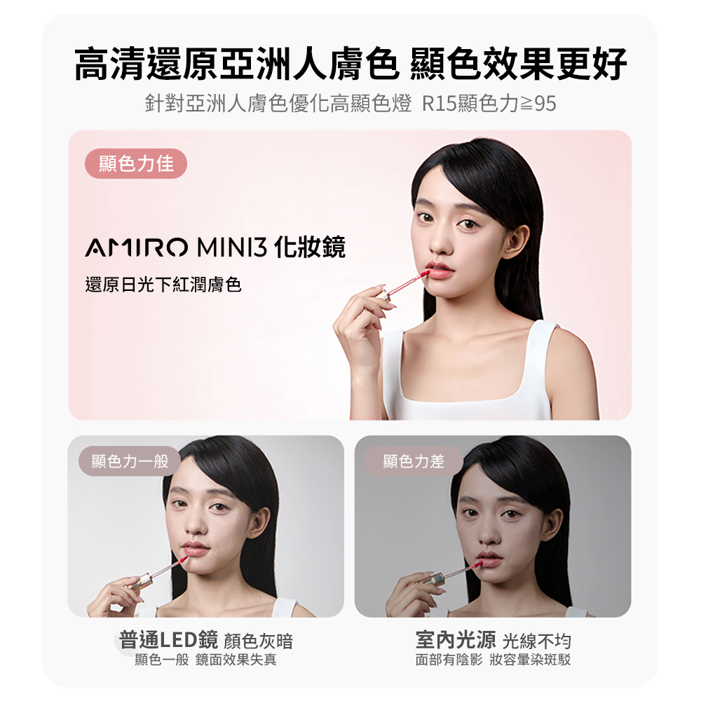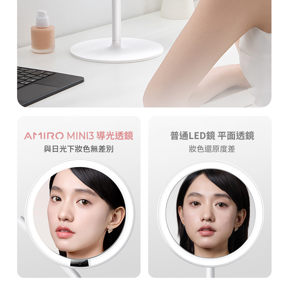 【AMIRO】Mate系列 MINI3 無段調光 LED高清日光化妝鏡-櫻花粉+5倍磁吸放大鏡