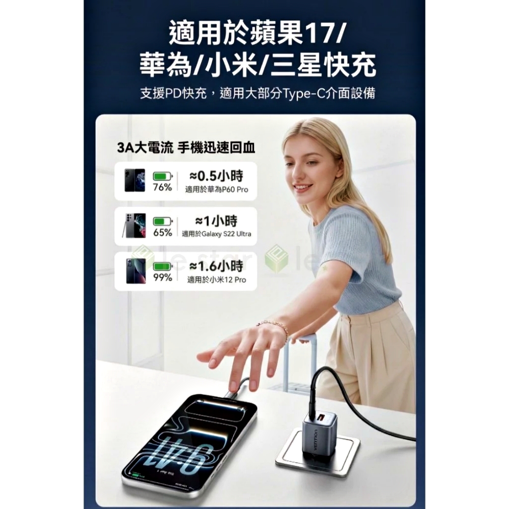60W PD 極速電力傳輸,最大輸出達 20V/3A。