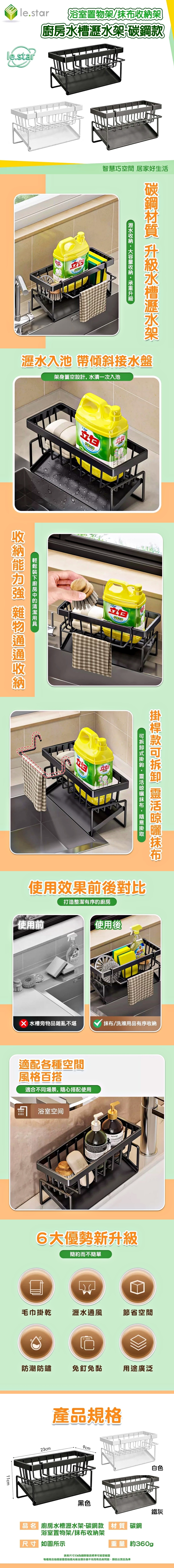Lestar 廚房水槽瀝水架/浴室置物架/抹布收納架-碳鋼款