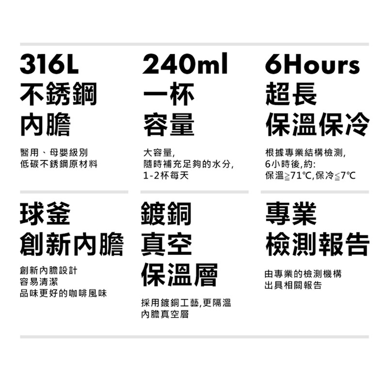 KEPO LQ 240ML KC010瑰夏咖啡杯 316L不銹鋼內膽 晨露冰滴