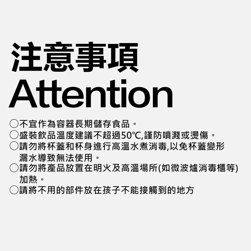 3.請勿將杯蓋和杯身進行高溫水煮消毒,以免杯蓋變形漏水導致無法使用。