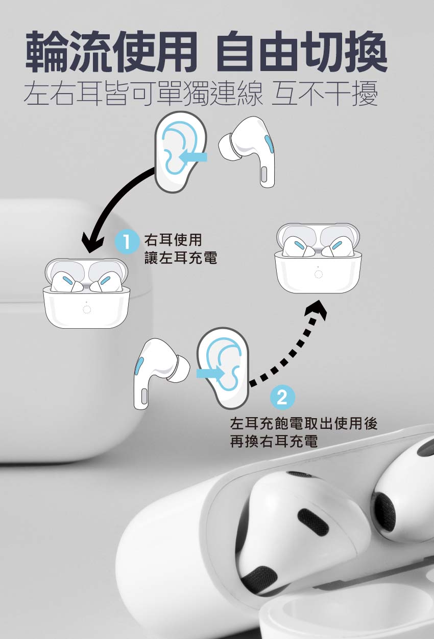 首次使用需雙耳同時取出,單隻耳機仍可正常使用,貼心設計,遺失免煩惱。
