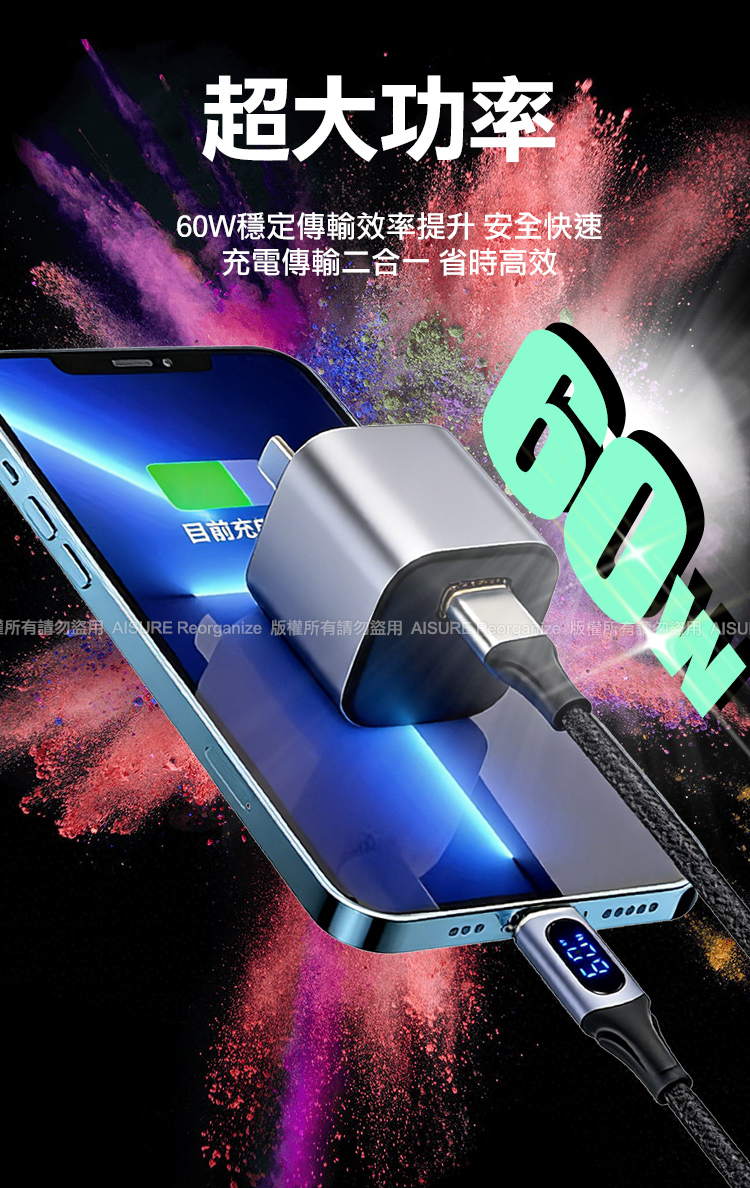 60W充電傳輸二合一,省時高效