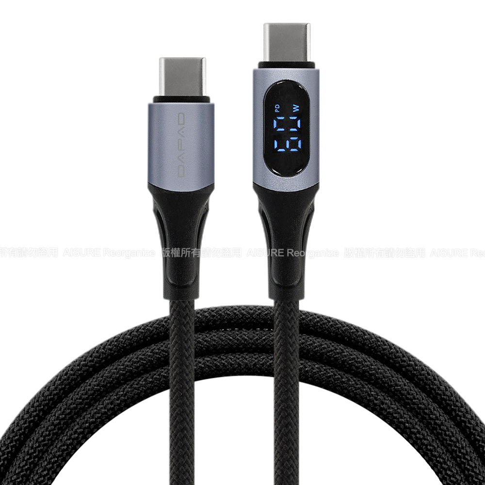 DAPAD Type-C to Type-C 60W 電力顯示快充傳輸編織線-1米