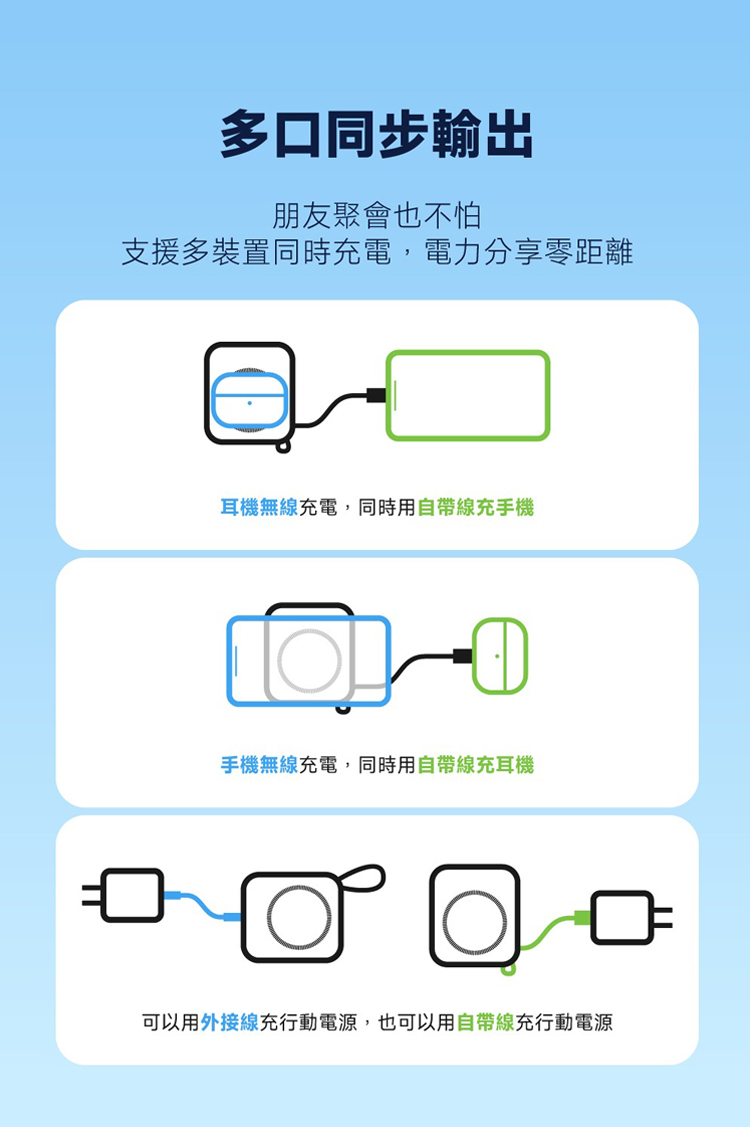 內建Lightning + Type-C兩條充電線,出門無須再帶線,隨插即用。