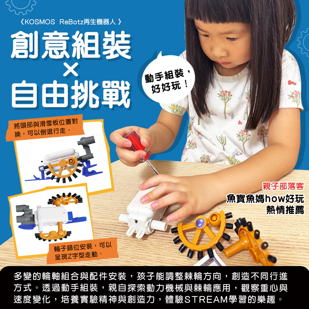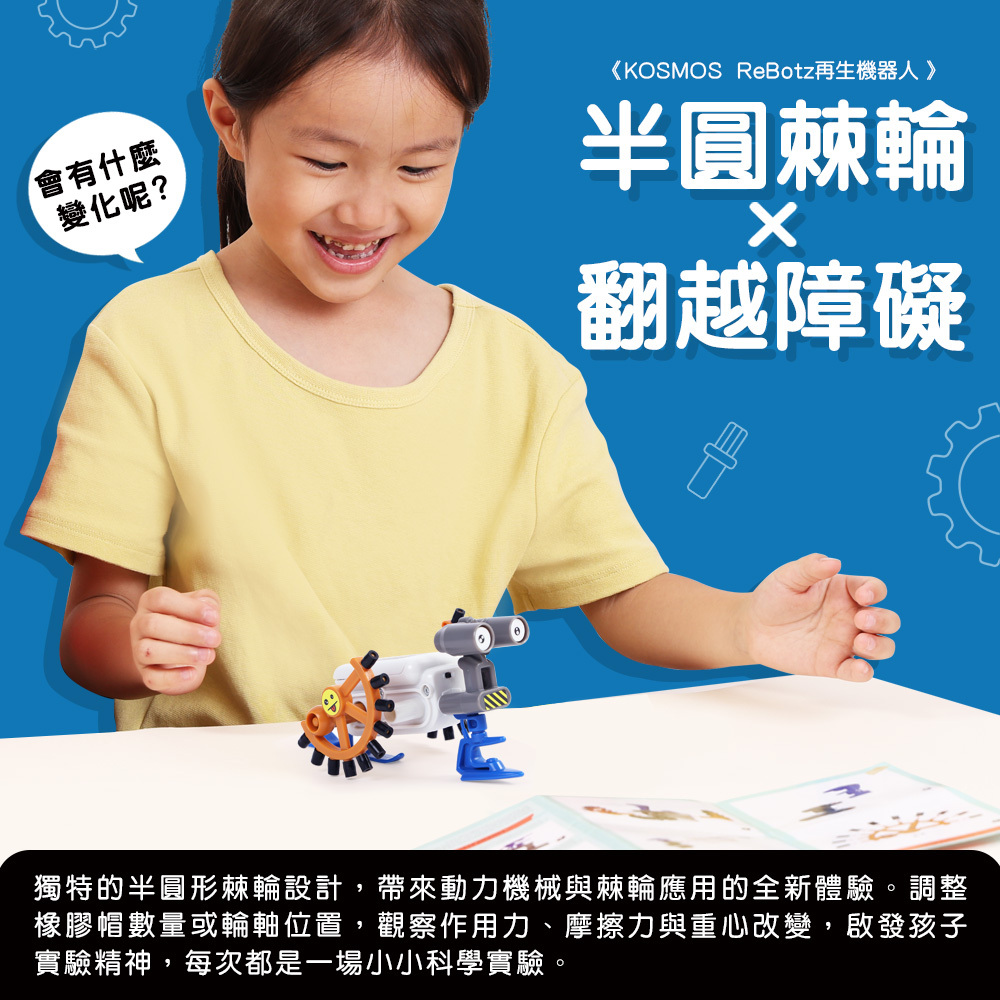 可拆卸的配件與多種輪軸組合方式,鼓勵孩子動手嘗試不同設計變因,