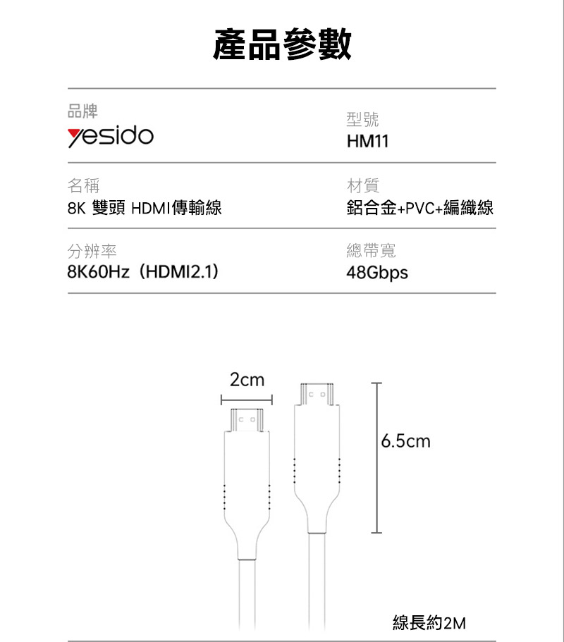 yesido HM11 HDMI 影音傳輸線(8K@60Hz)(HDMI 2.1)(1.8M)