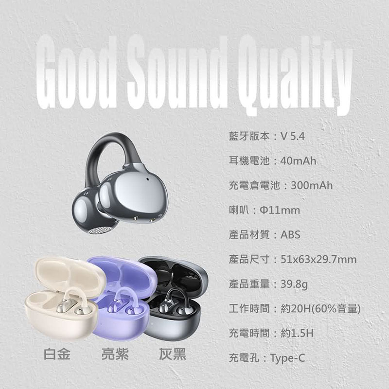 ◎ 耳夾式設計:不入耳,舒適輕盈,久戴無壓力