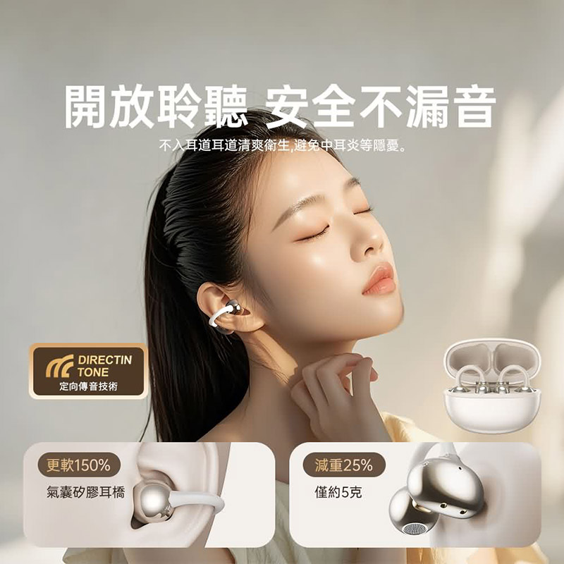 ◎ 不入耳設計:開放式舒適配戴,告別悶熱耳道,開車、通勤更自在