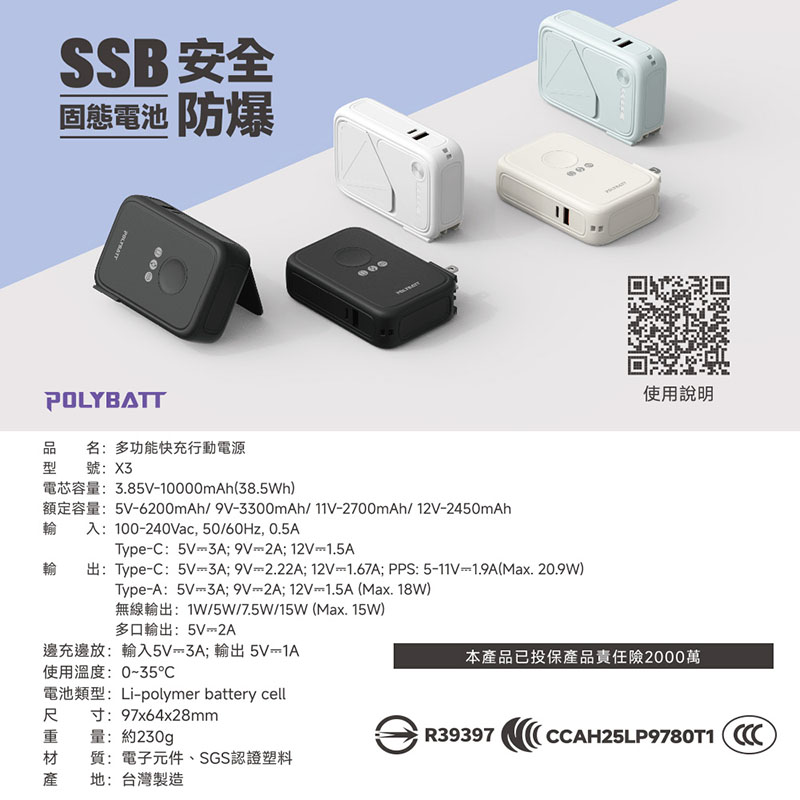 10000mAh超大容量,新世代SSB固態電池技術,極致安全 時刻守護