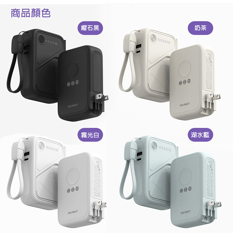 POLYBATT 台灣製造 X3防爆固態 20W八合一行動電源10000mAh(CCC認證/快充/磁吸) 霧光白