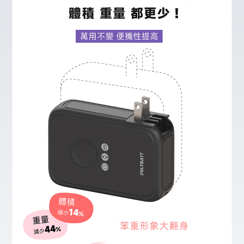 POLYBATT 台灣製造 X3防爆固態 20W八合一行動電源10000mAh(CCC認證/快充/磁吸) 曜石黑