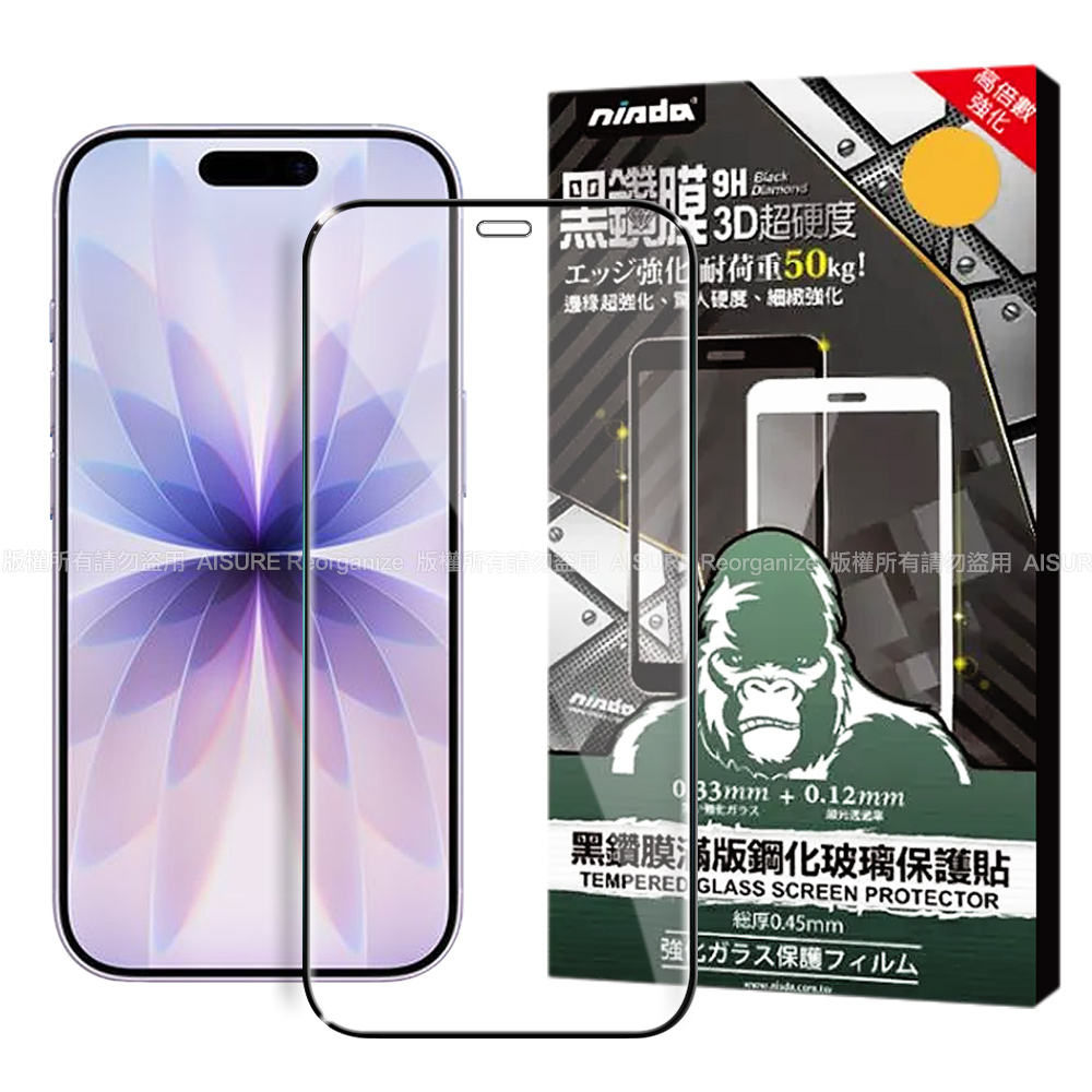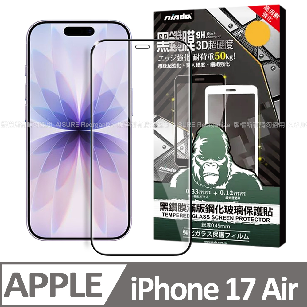 NISDA iPhone 17 Air 6.5 3D滿版超硬度黑鑽膜玻璃貼