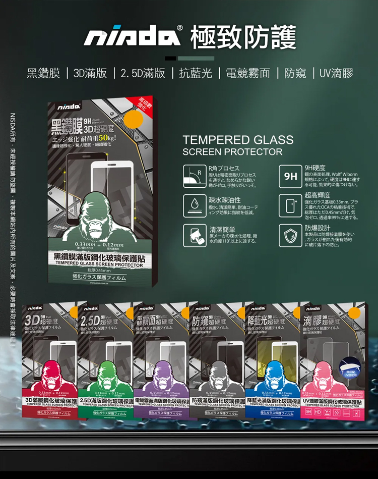 業界最強9H超高倍數邊強化3D滿版玻璃貼