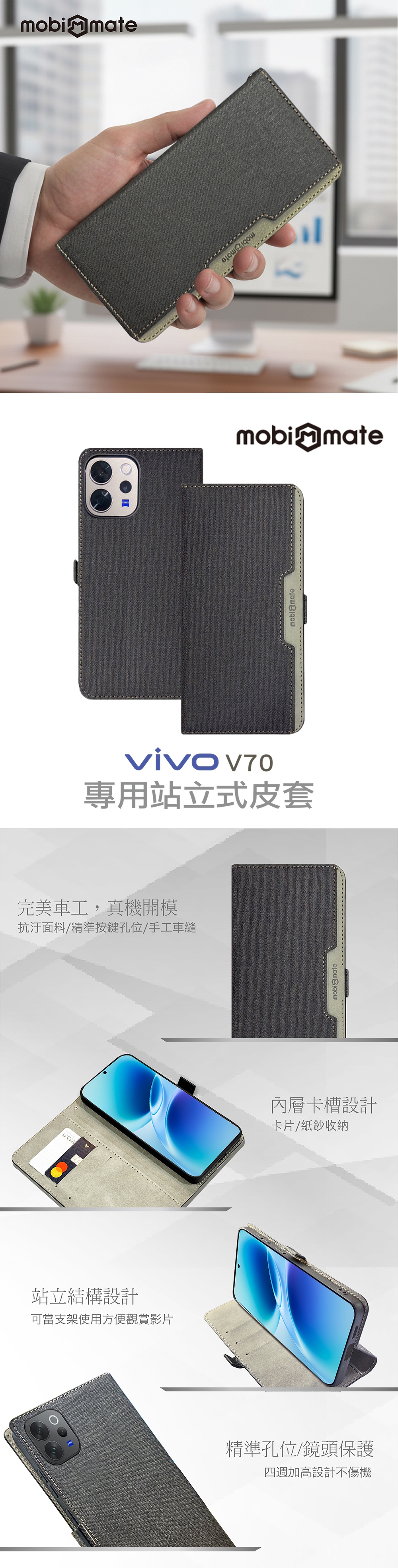 Mobi Mate vivo V70 側掀站立式皮套 黑