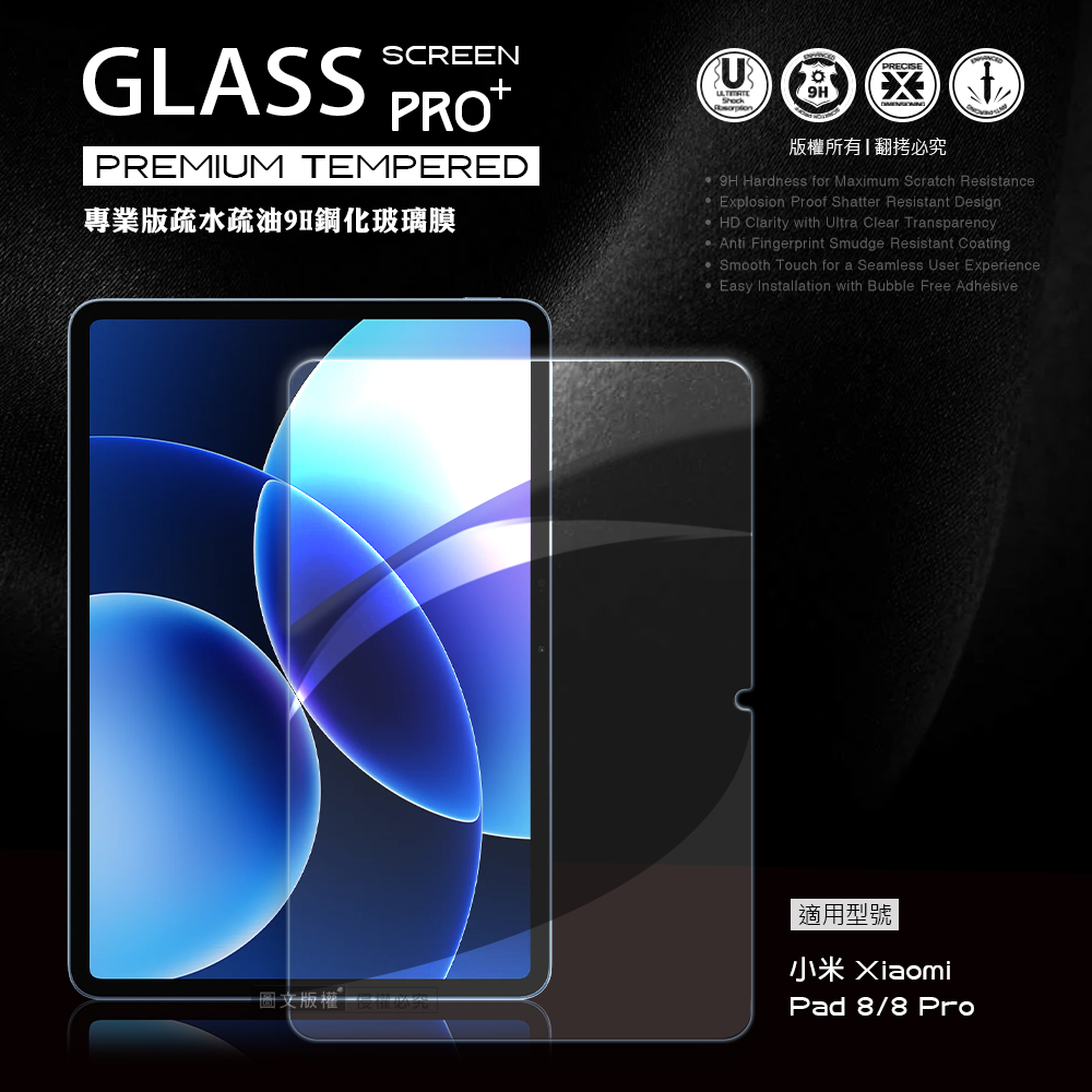 超抗刮 小米平板Pad 8/8 Pro 專業版疏水疏油9H鋼化玻璃膜 平板玻璃貼