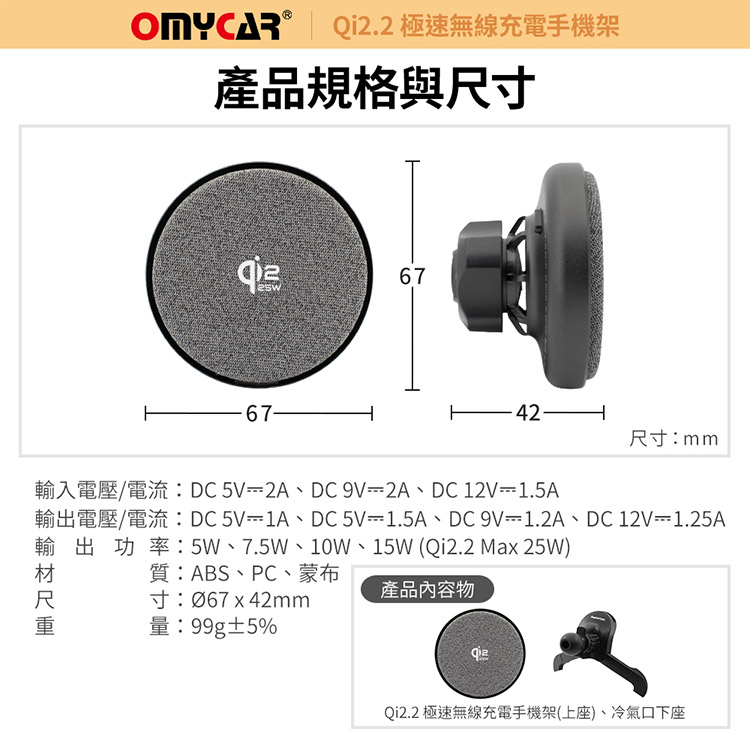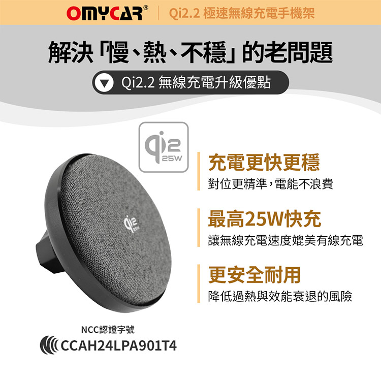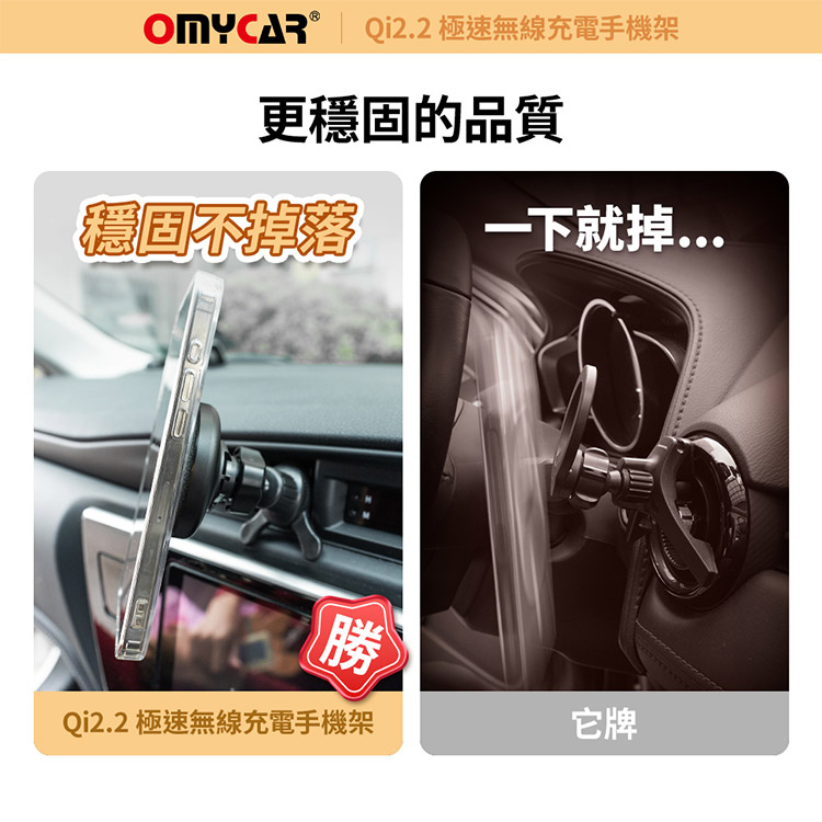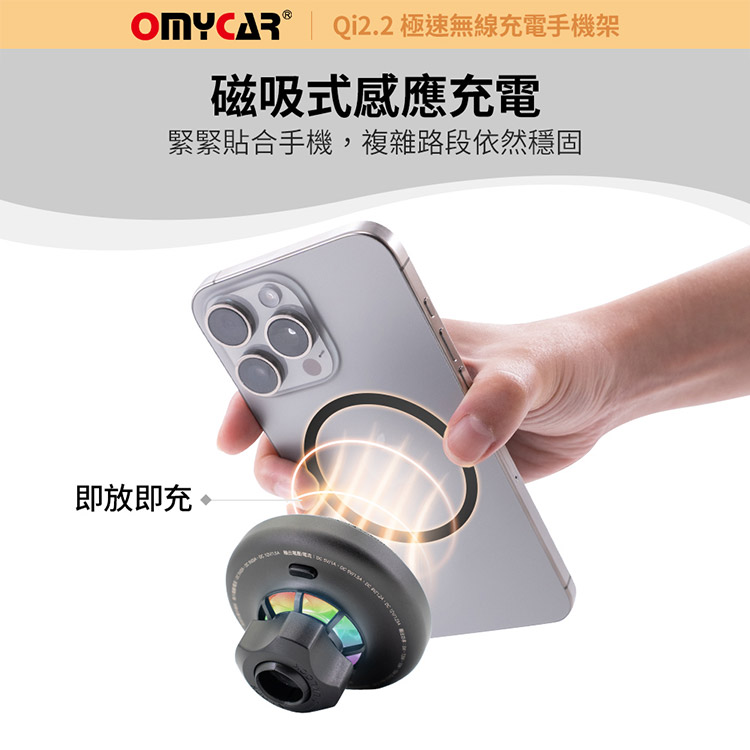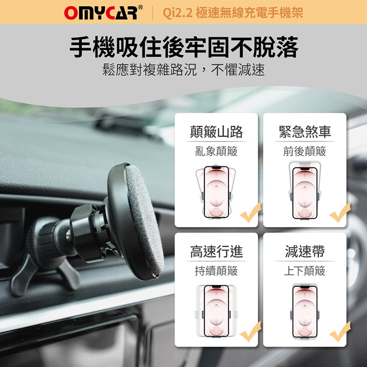 【OMyCar】Qi2.2 極速無線充電手機架(送-冷氣口支架) 國家認證 一年保固 (強力磁吸 感應充電 車用手機架 汽車手機架)