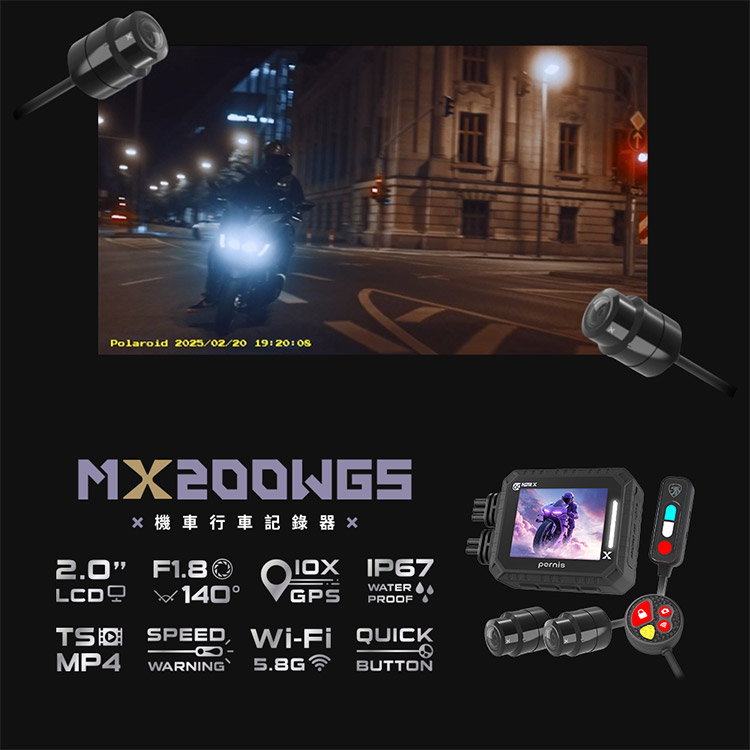 含到府安裝【Polaroid寶麗萊】Pernis MX200WGS機車行車記錄器(送32G小卡) 行車紀錄器
