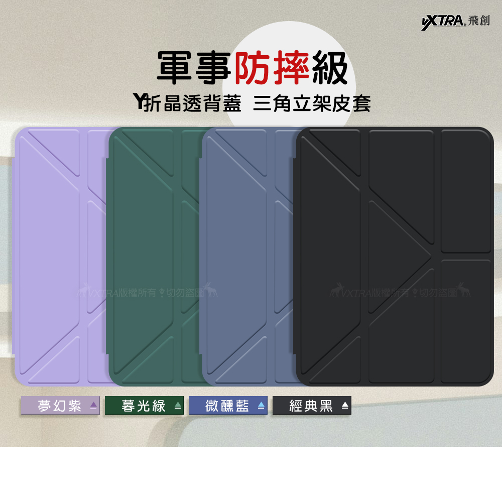 VXTRA 軍事防摔級 2026 iPad Air8 13吋 M4 Y折晶透背蓋立架皮套 含筆槽(經典黑)