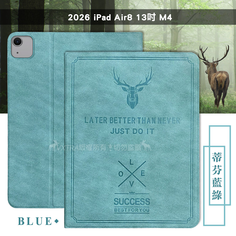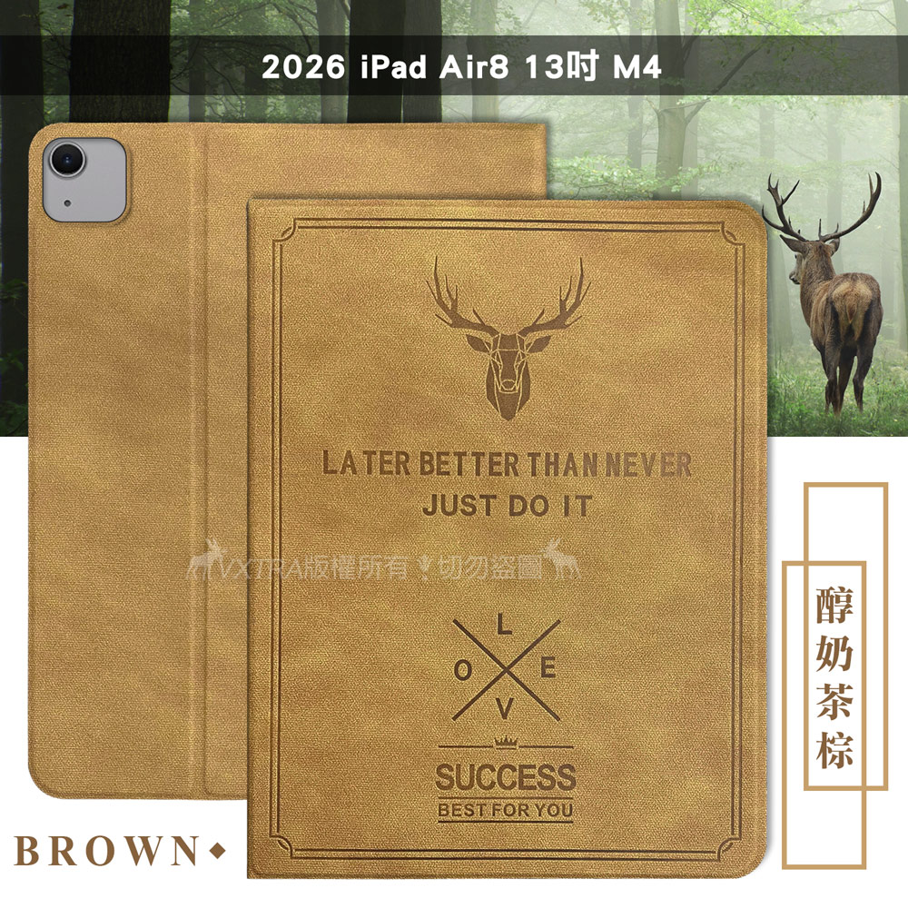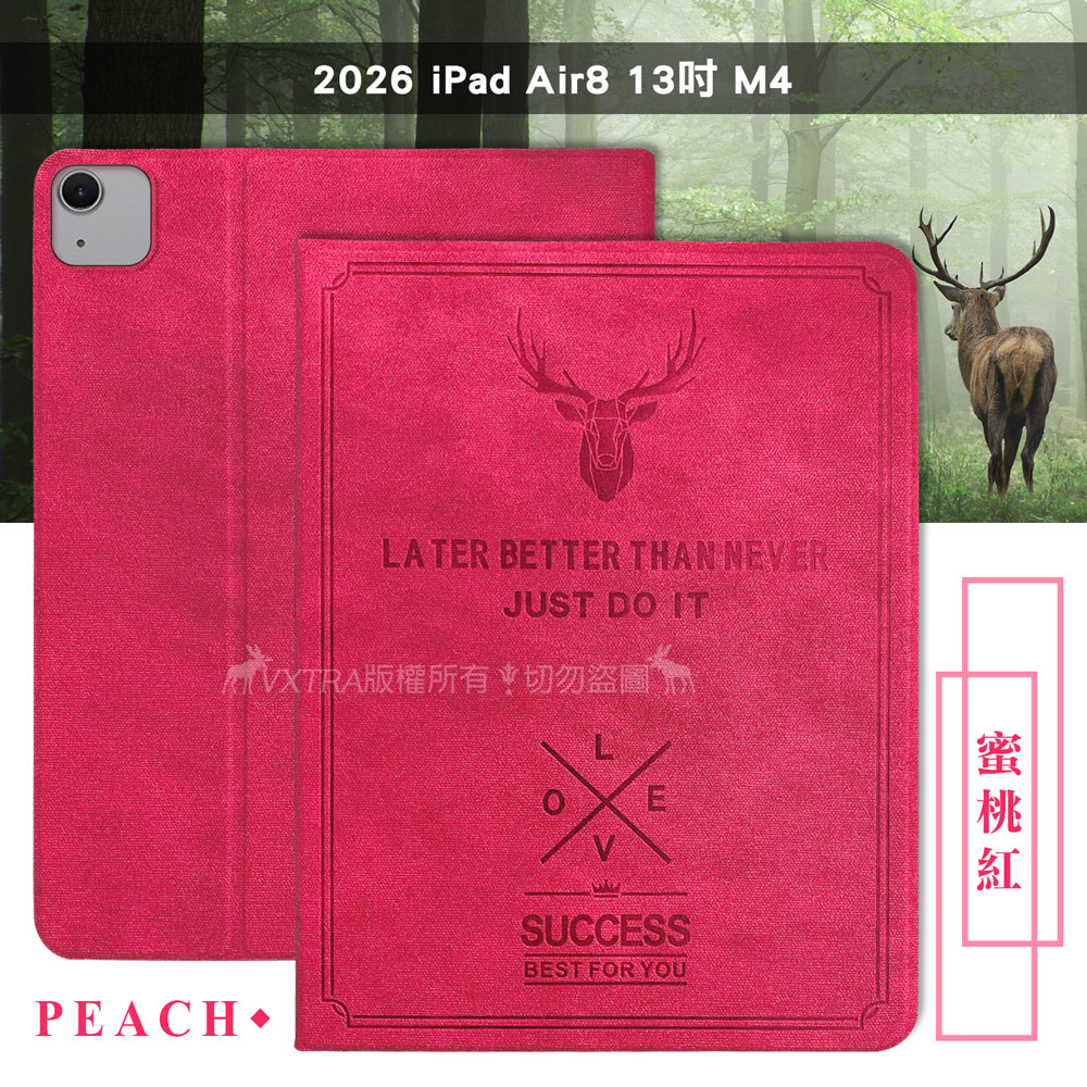 二代筆槽版 VXTRA 2026 iPad Air8 13吋 M4 北歐鹿紋平板立架皮套 保護套(蜜桃紅)