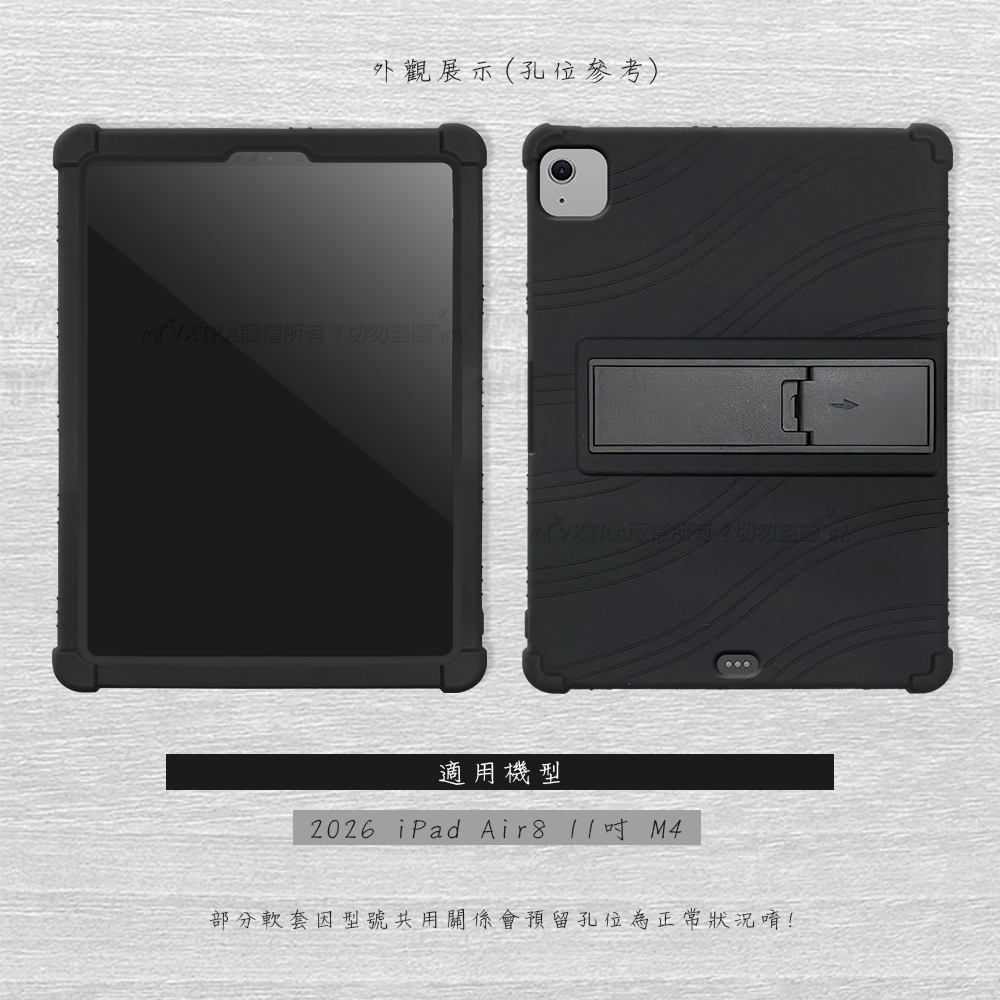 VXTRA 2026 iPad Air8 11吋 M4 全包覆矽膠防摔支架軟套 保護套(黑)